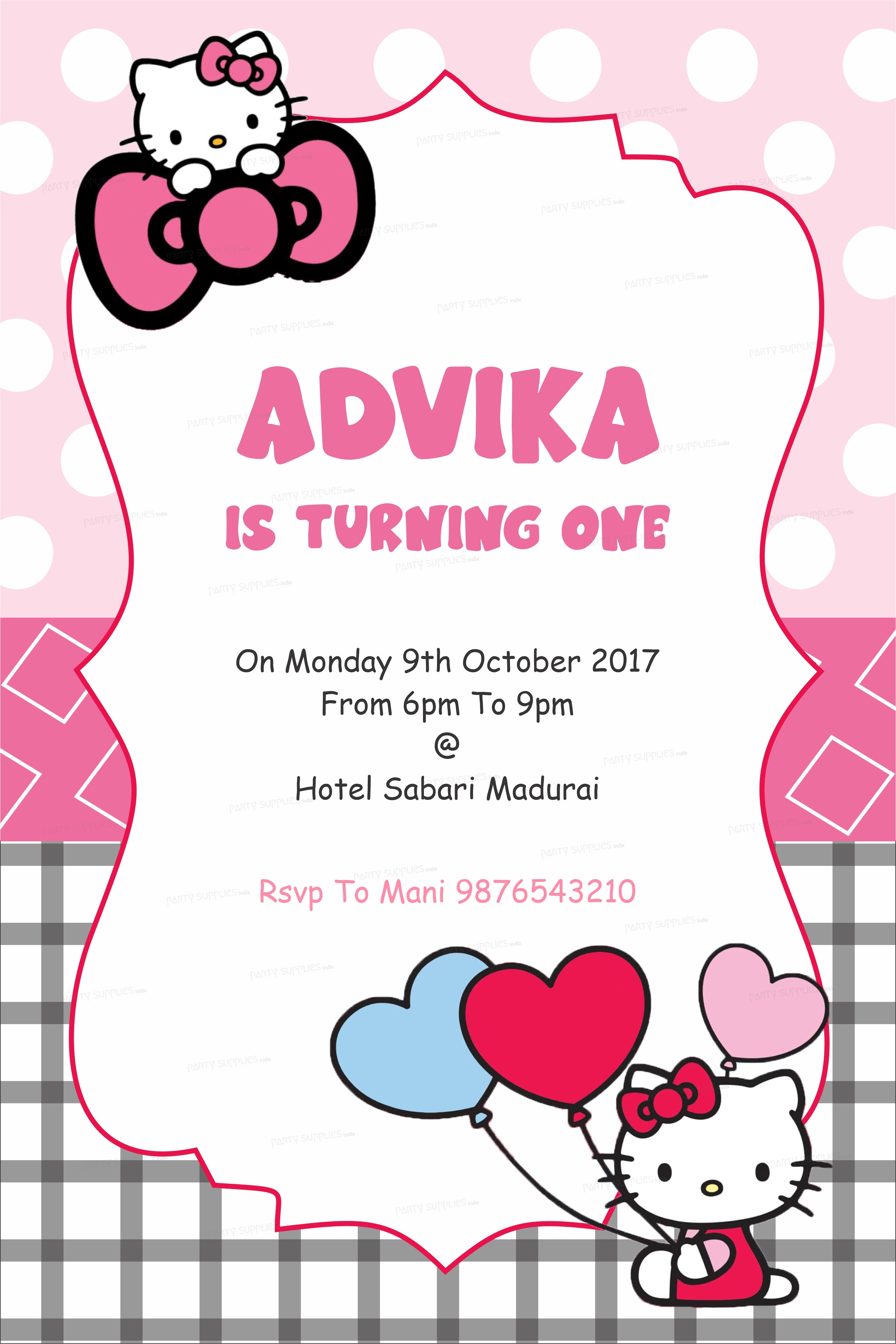 Calling all birthday girls, this Hello Kitty birthday party invitation is for you! Let Kitty White help you celebrate in style with this colorful Hello Kitty birthday party invitation featuring a pretty pink background and a rainbow of hearts, stars and flower graphics. It's easy to customize your message, and you can even change the font or text color! Since the invite is customized and printed in-house we do not provide envelop.