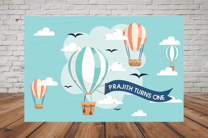 This backdrop features Hot Air Balloon theme, plus a beautiful frame to wish Happy Birthday to the birthday boy... Suitable for both indoors and outdoors, this lightweight banner can be easily pinned or taped to the wall. You can also add few props to this Backdrop to create the perfect setting for photos or for cake table.