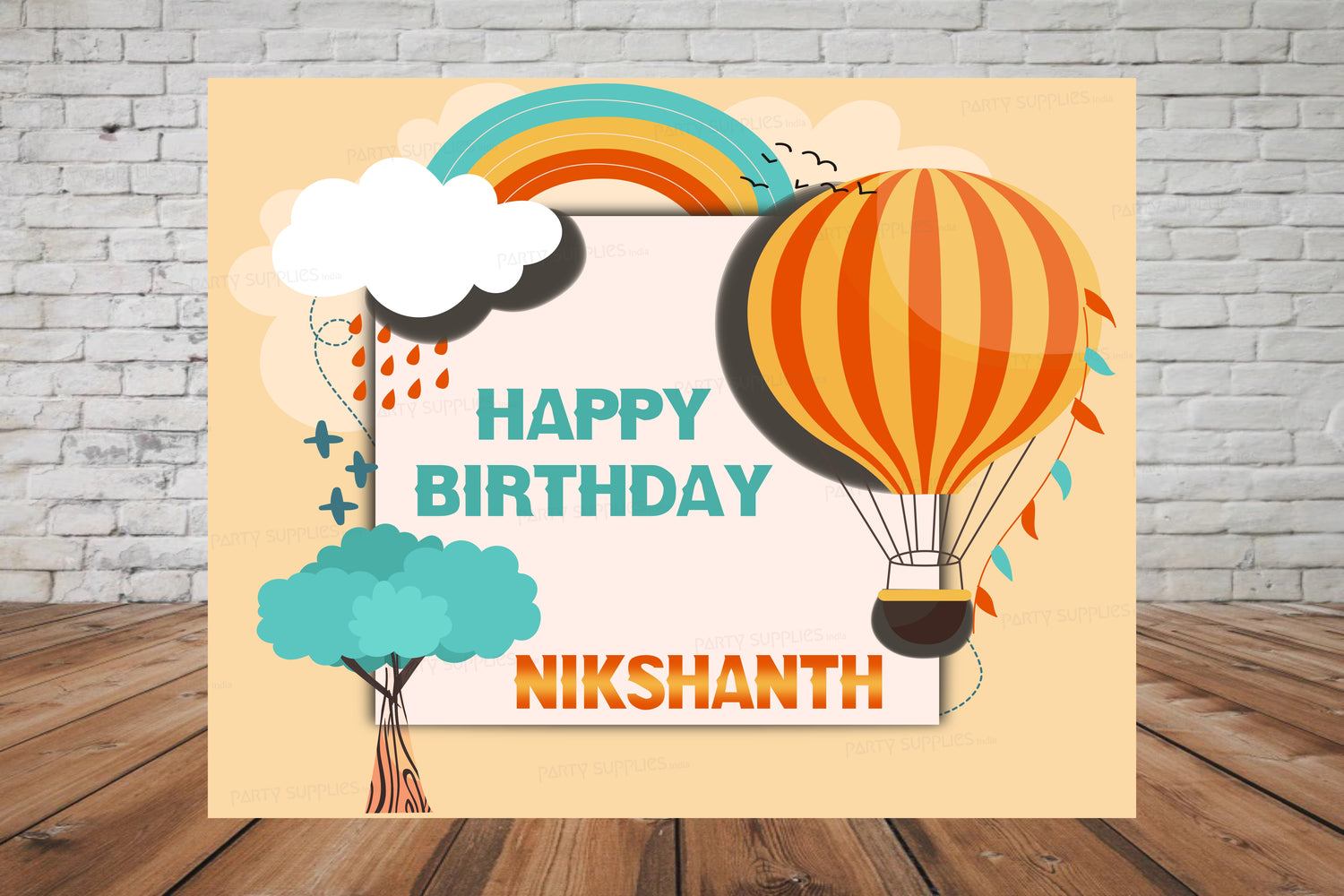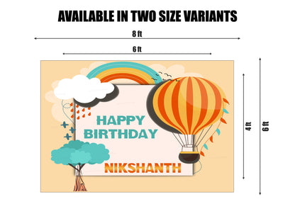 This backdrop features Hot Air Balloon over the sea, and amidst clouds, plus a beautiful frame to wish Happy Birthday to the birthday boy... Suitable for both indoors and outdoors, this lightweight banner can be easily pinned or taped to the wall. You can also add few props to this Backdrop to create the perfect setting for photos or for cake table.