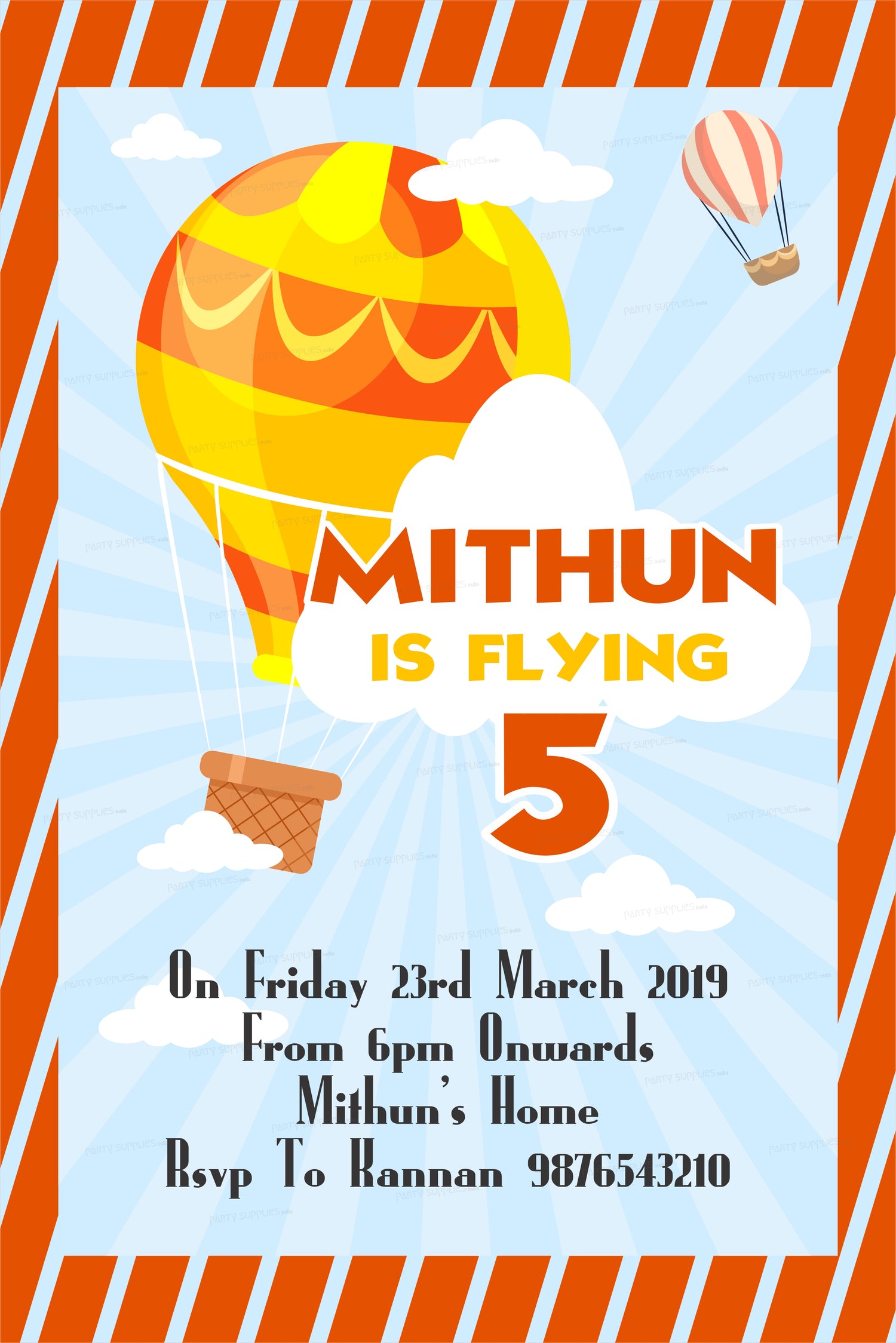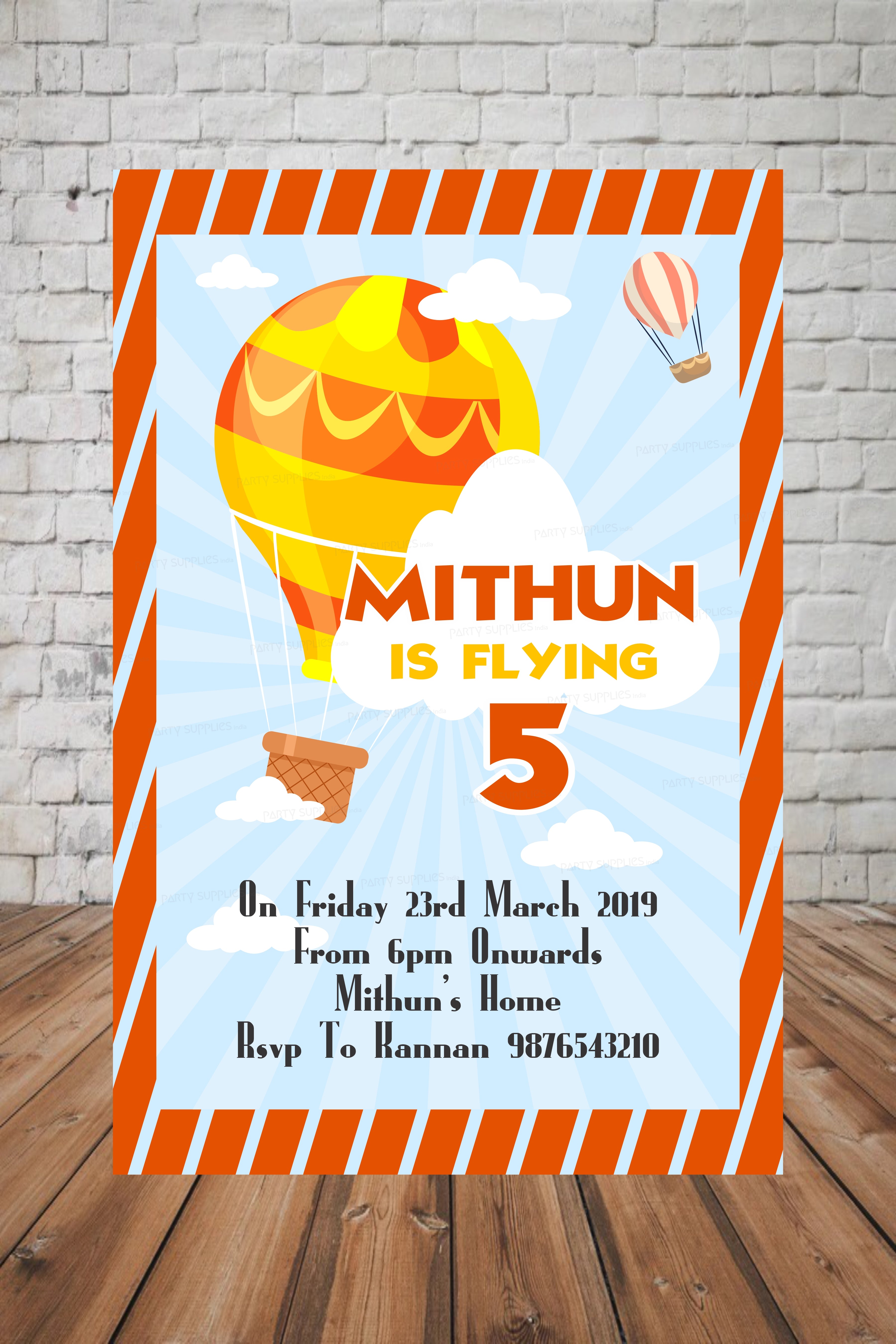 Make sure all of your party guests have the details of your little one's Hot Air Balloon party with these party invitations! The front of the invitations feature Hot Air balloon in a turquoise background! Since the invite is customized and printed in-house we do not provide envelop.
