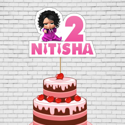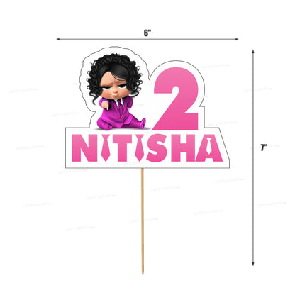 This carefully crafted Lady Boss Baby cake topper will be the perfect finish touch to your little girl's party decor. Personalize it with the kid's name.