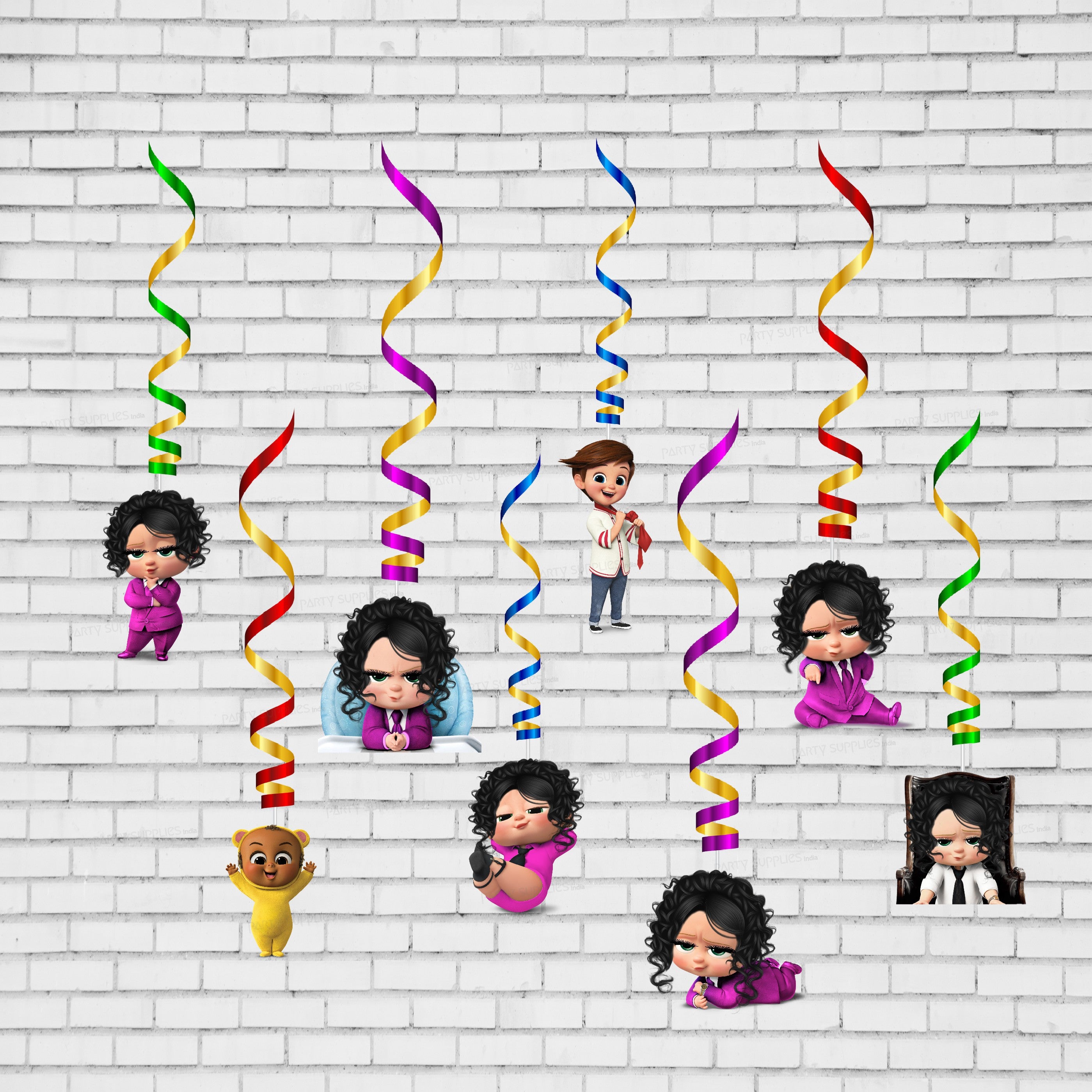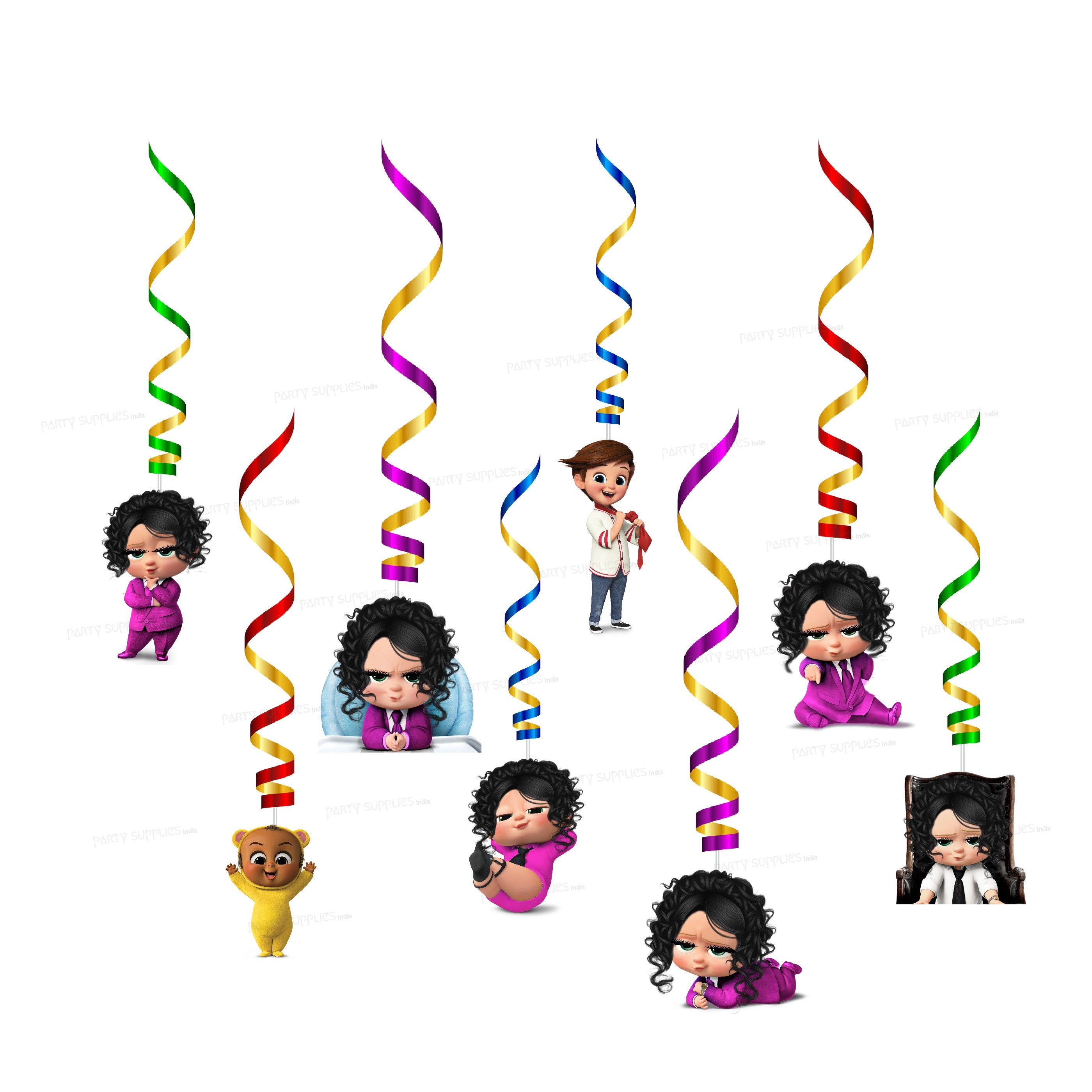 Create a fun space party scene on your ceiling with these galaxy themed hanging decorations! This set of 8 includes a variety of paper cutouts and swirls that shine in the light!
