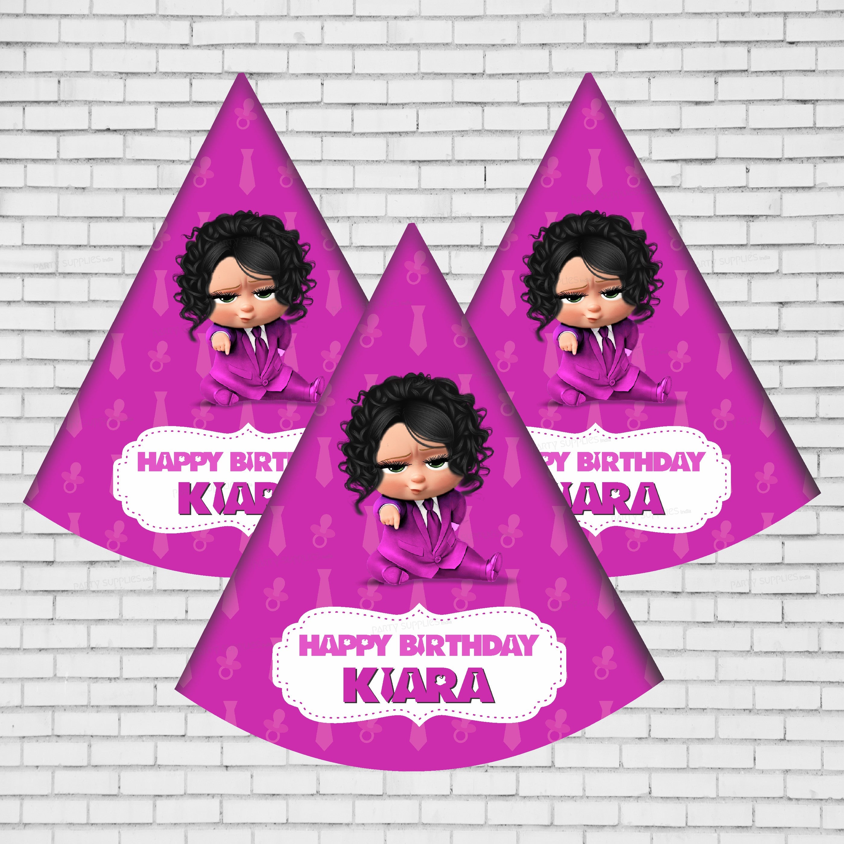 Lets spread the party vibes by including the invitees and well wishers into the mood. The party hats would bring the child in everyone and help them play along. The Lady Boss Baby theme specific hats can be ordered along with the other décor.