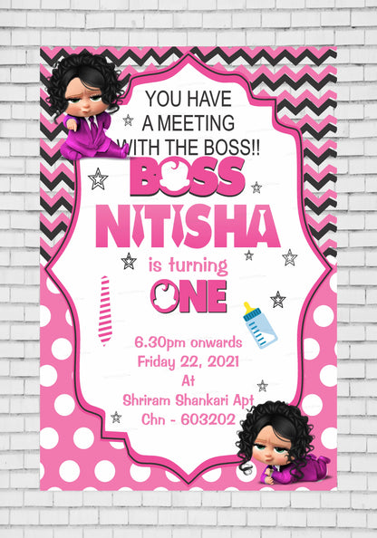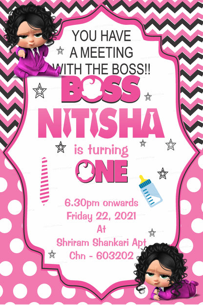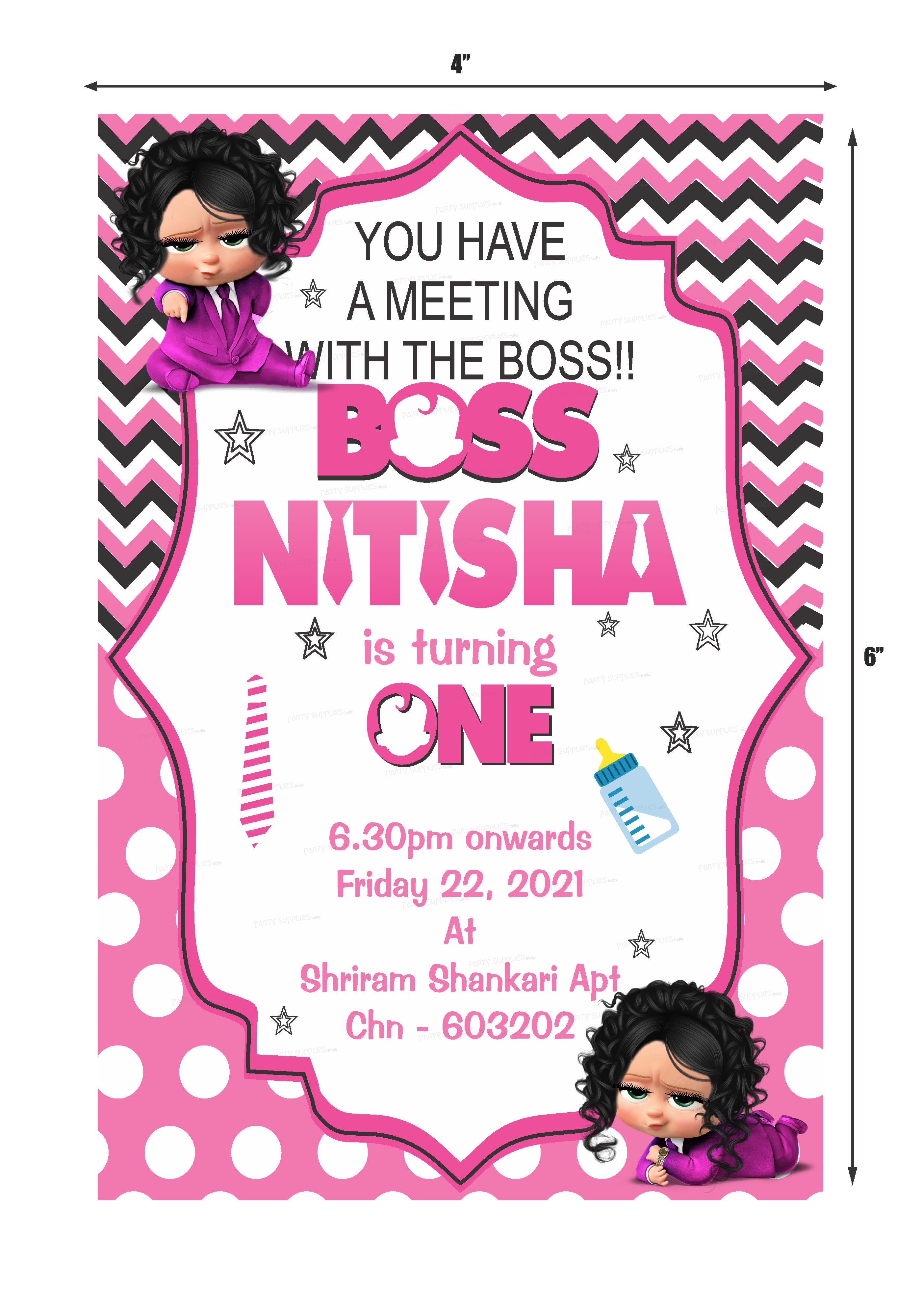 Let us start the birthday bash with the party invite. The theme based invite would help the invitees be prepared with mood set for a wonderful party. The Lady Boss Baby party invite can be personalized with your kid's name ,family details , date, venue and more details as well. Since the invite is customized and printed in-house we do not provide envelop.