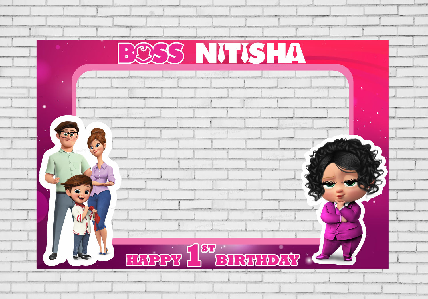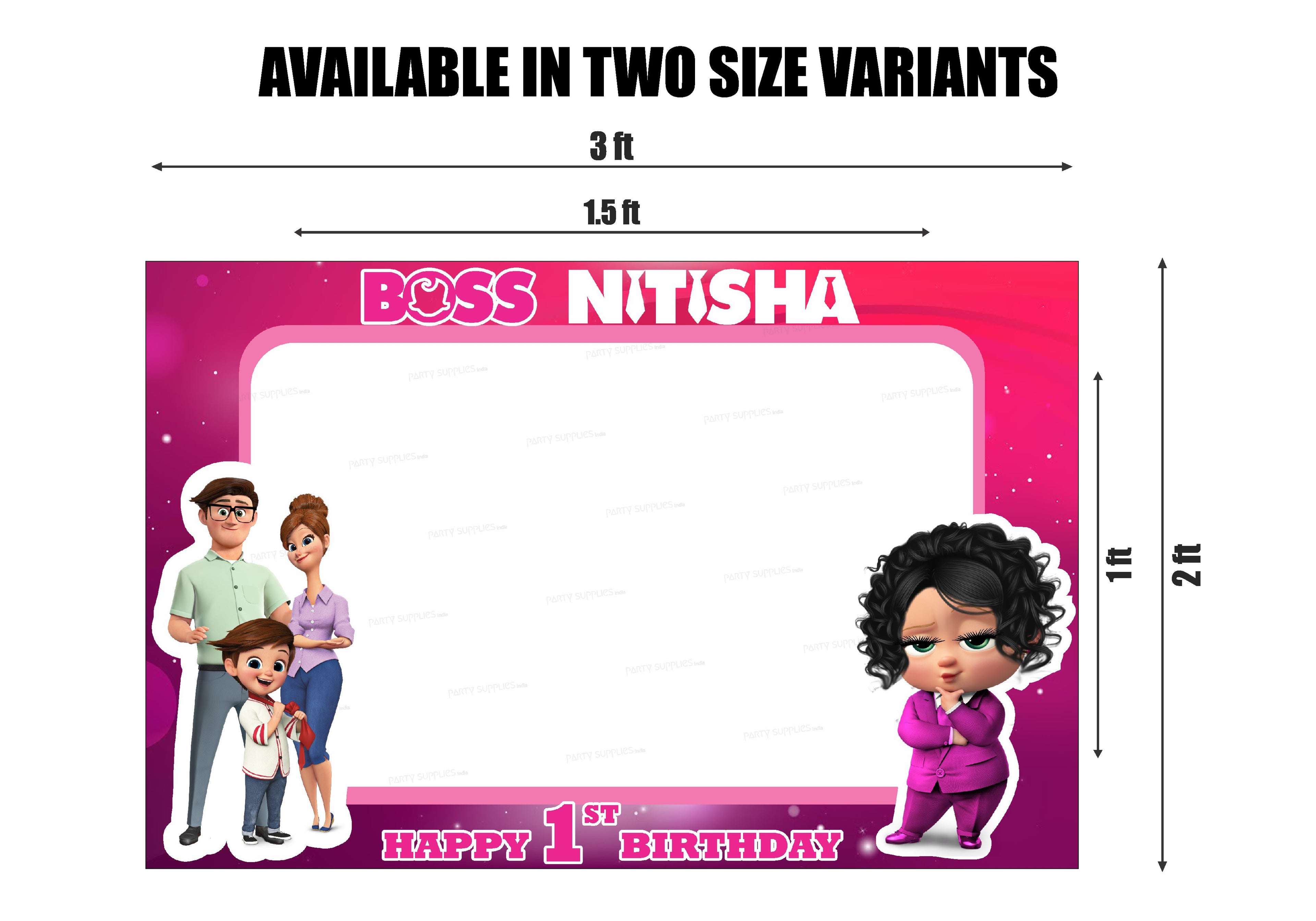 Memories stay with us forever. Pictures help us preserve them. A birthday party would always have pictures as great takeaways. Customize this Lady Boss Baby themed photobooth with your kid's name and add a photo of the cute one too.