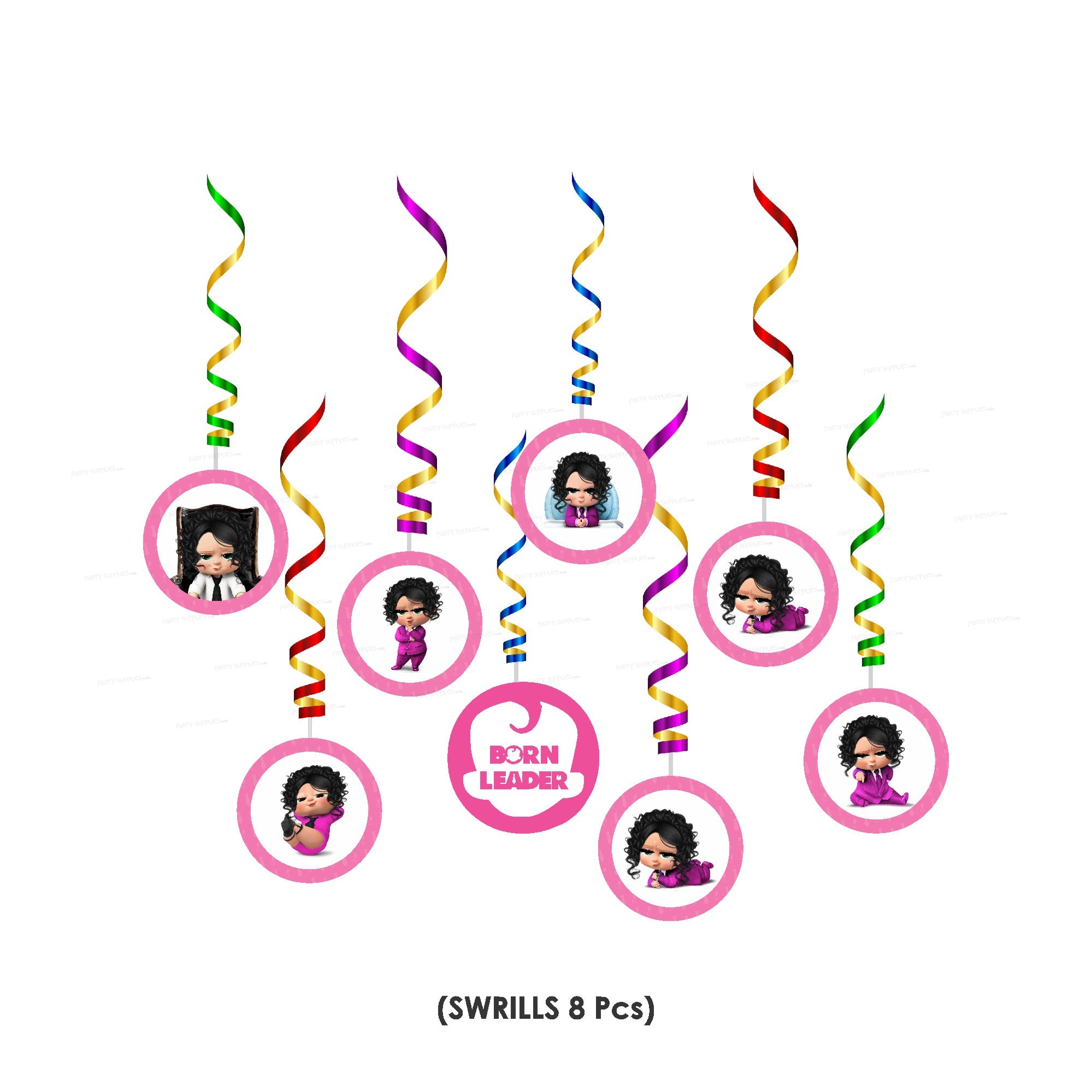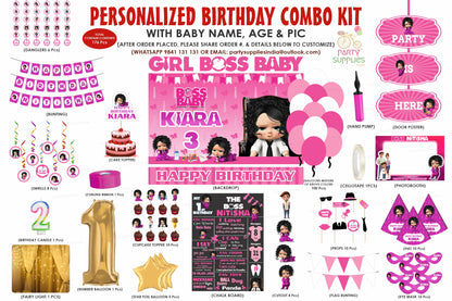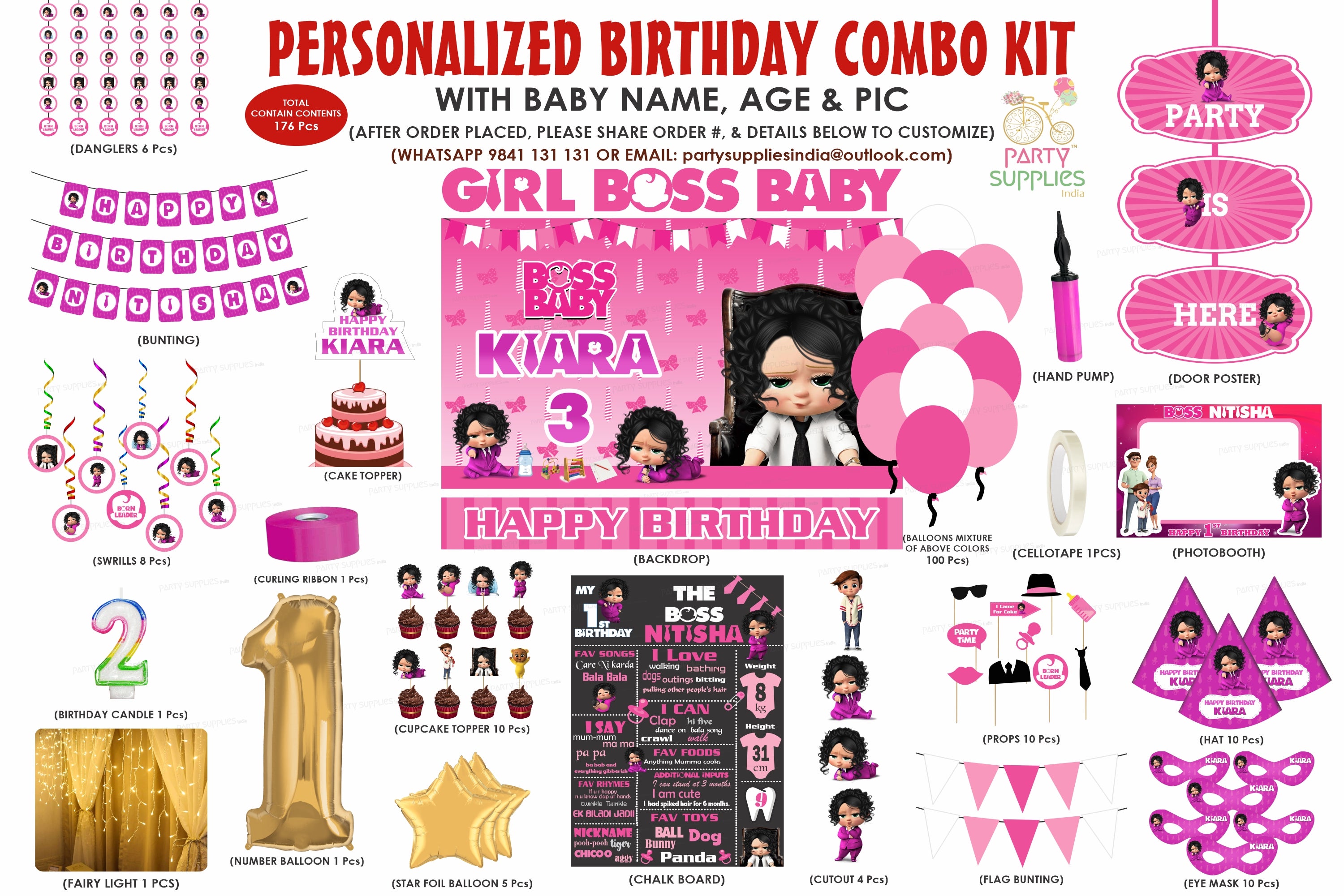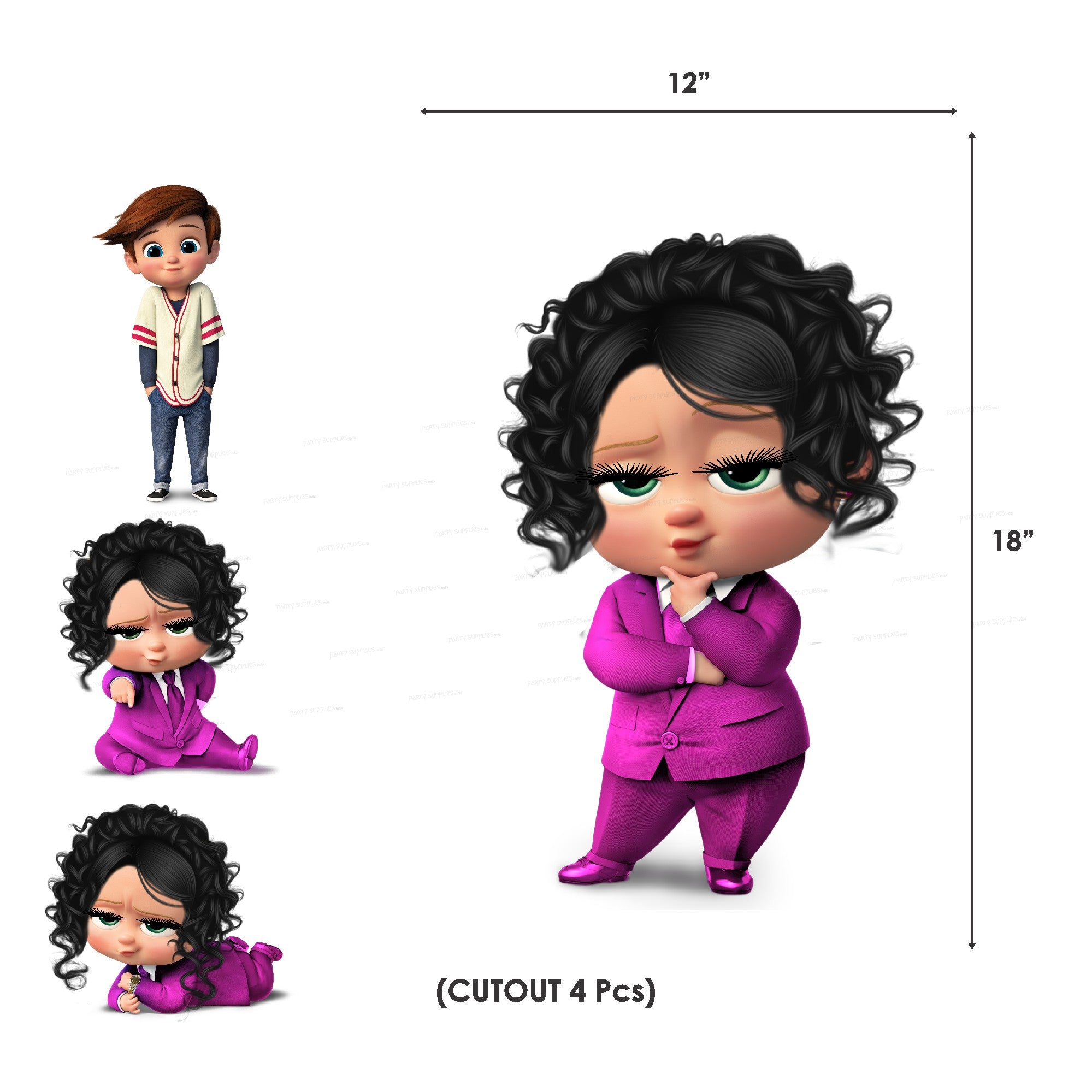 A new lady boss baby's arrival impacts a family, told from the point of view of a delightfully unreliable narrator wearing a suit and carrying a briefcase. The instant sibling rivalry must soon be put aside when discovered that Lady Boss Baby is actually a spy on a secret mission, and only he can help thwart a dastardly plot that involves an epic battle between puppies and babies.. The story line is quite an imagination. The babies these days are truly Bossy. Celebrate the birthday of your Lady Boss Baby with the decor personalized with her details. Basic Kit is Available for Boss Baby Theme.