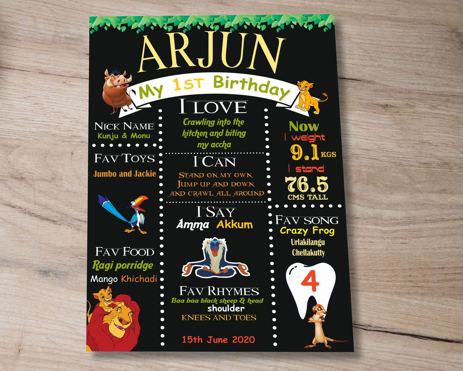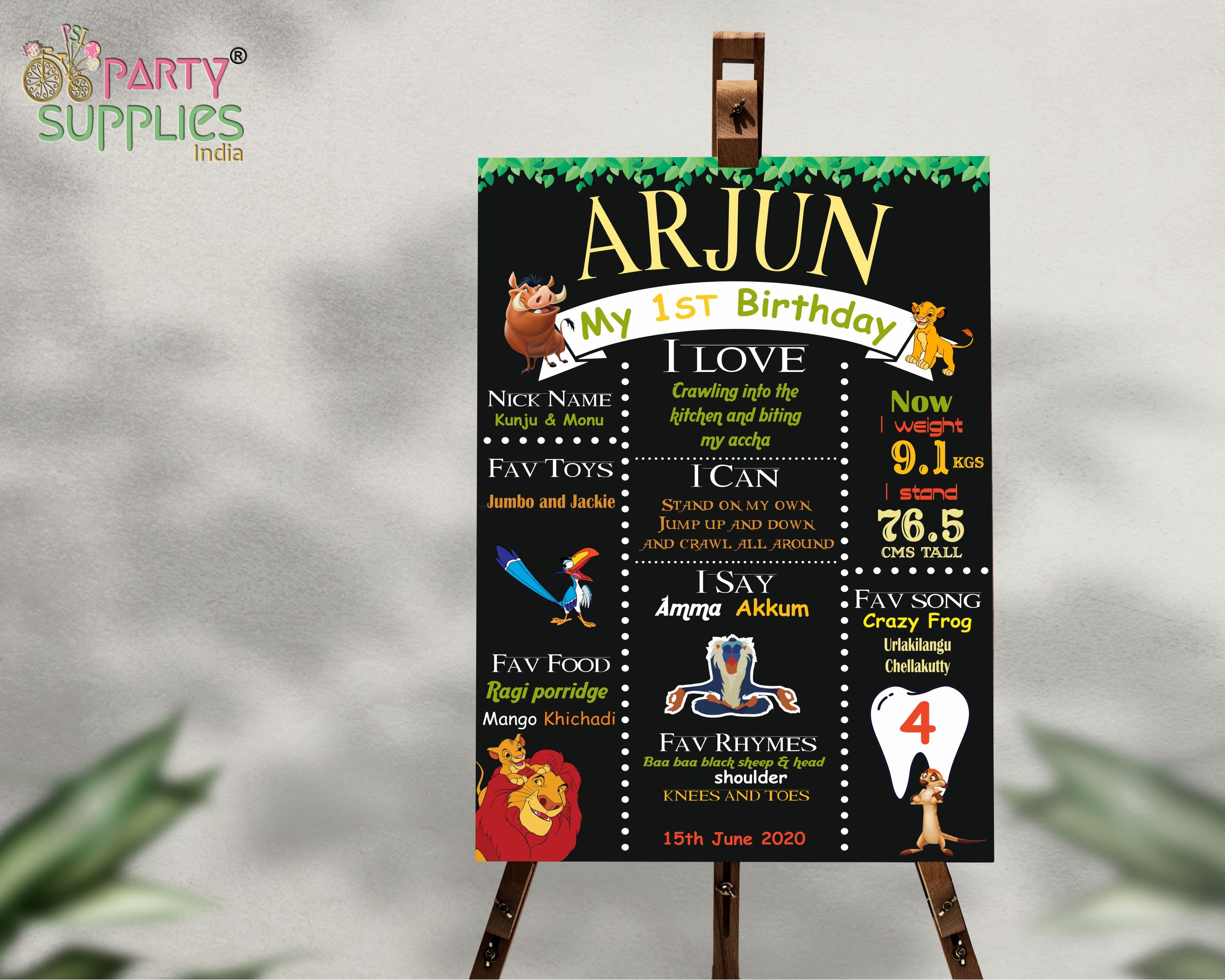 Chalk Board is a great way of cherishing the baby's likes, the milestones in their growth. A Chalk board would be a gift for your kid forever. Based on the Lion King theme, you can help us customize it with fine details. You can also choose the pictures .