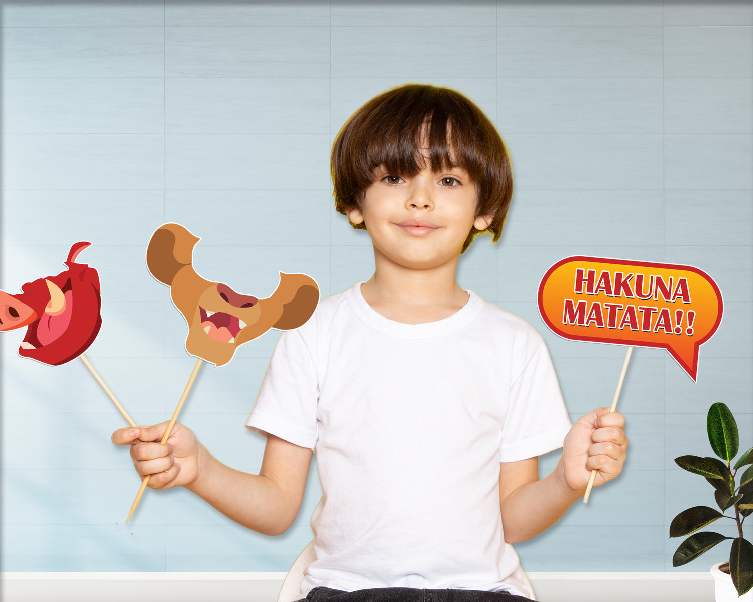 The perfect photo booth begins with fabulous photo booth props. Our printed and cut kit will help you easily create fun party photos at your next celebration. Your friends and family will love the fun photos they will create with this amazing 10 piece Lion King Photo Booth Prop Kit.