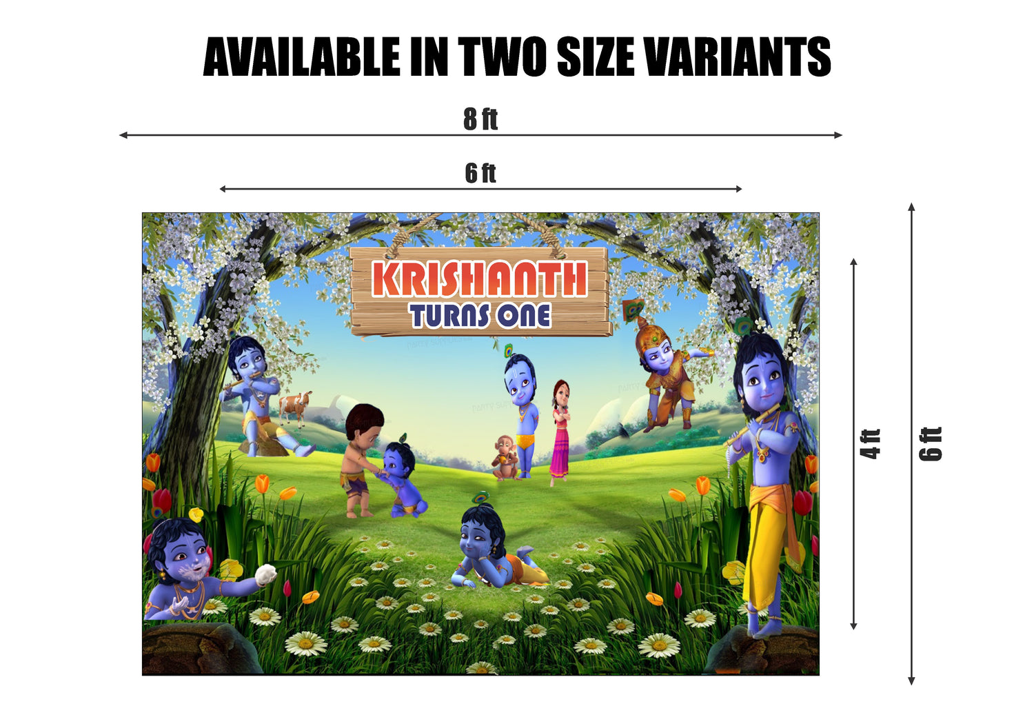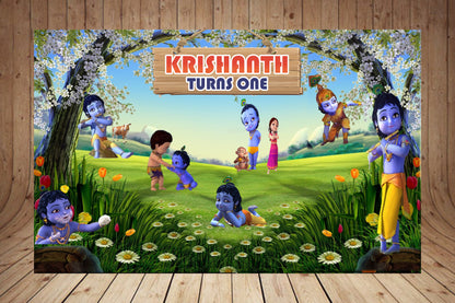 Little Krishna and his friends are an all time favourite among kids and elders.This pretty and colourful backdrop with Little Krishna in Vrindavan brings the mystical environment to your party.