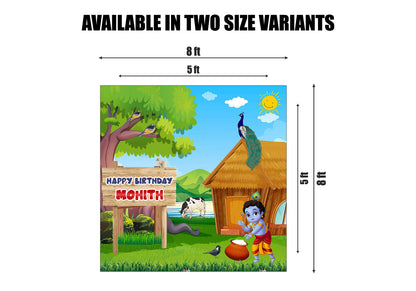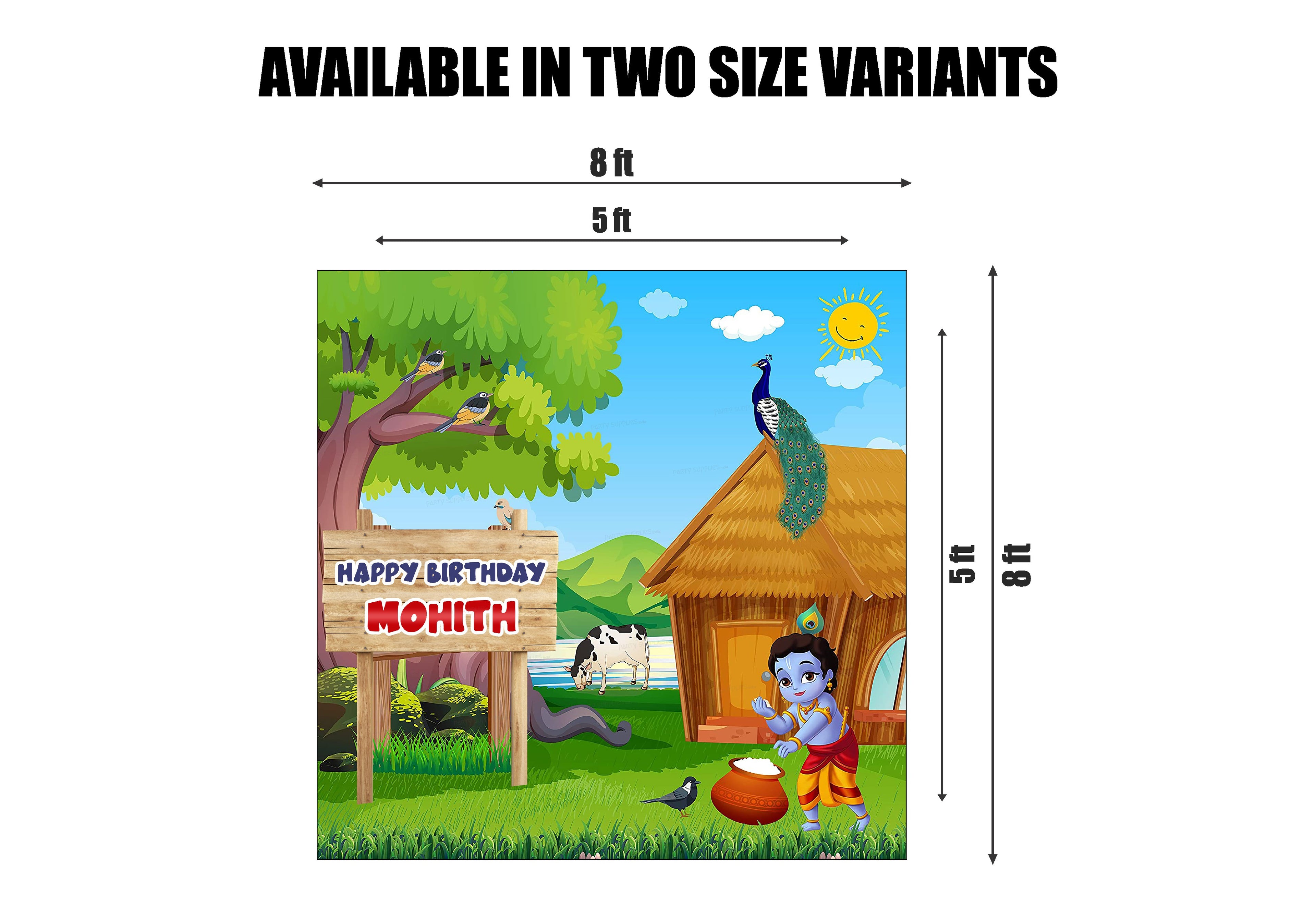 Little Krishna and his friends are an all time favourite among kids and elders.This backdrop with Little Krishna and a peacock in Vrindavan brings the mystical environment to your party.