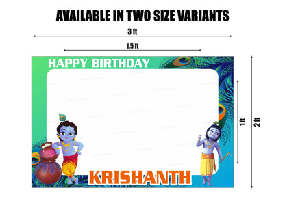 Memories stay with us forever. Pictures help us preserve them. A birthday party would always have pictures as great takeaways. Customise this Little Krishna themed photobooth with your kid's name and add a photo of the cute one too.