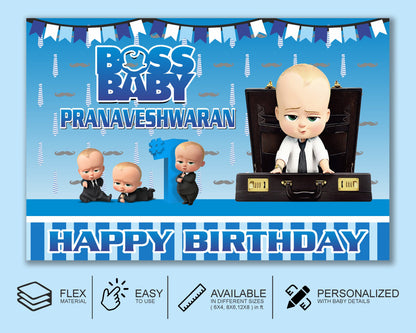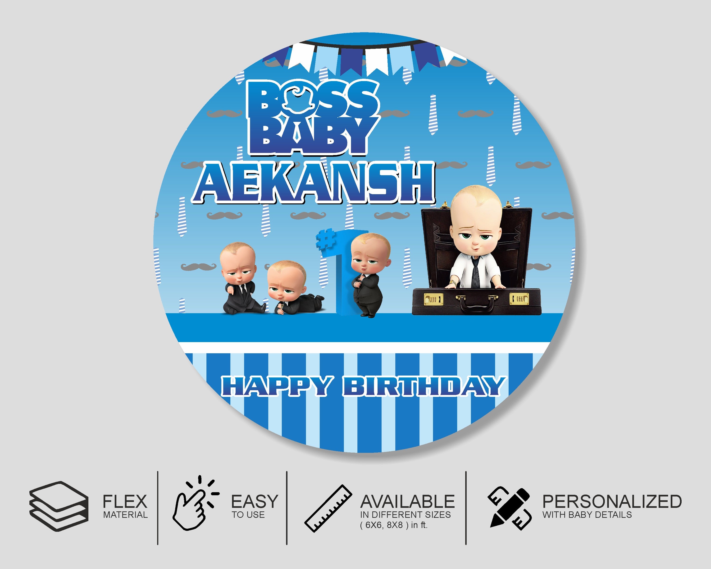 Most Babies are truly Bossy these days. If you could identify the natural Boss in your baby , choose this BossBaby Theme to lighten the mood and enjoy the party . This backdrop has different face expressions of the Bossy Baby . Personalise the backdrop with your baby's name. The flex comes in 6*5 feet that will perfectly fit your celebrations at home.