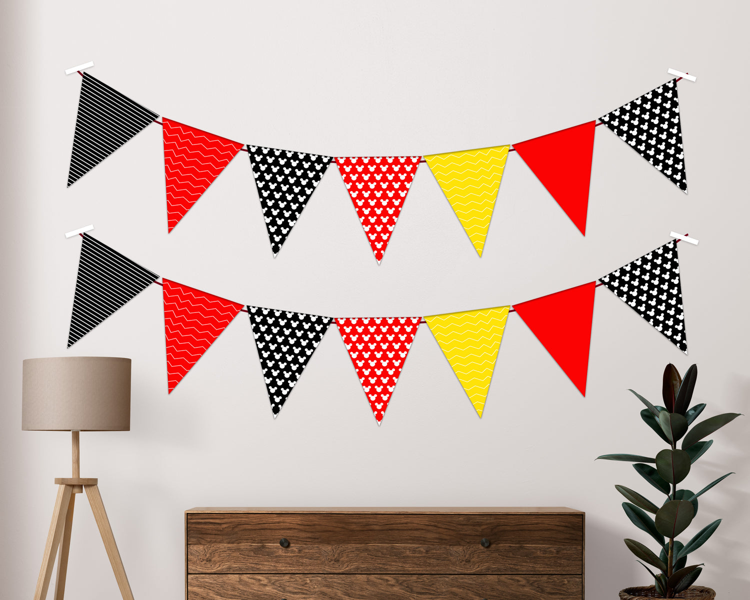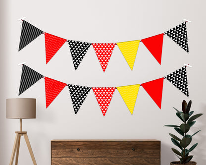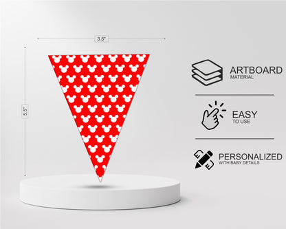 Whether hung in a living room, entrance way, outdoors or in a banquet hall, this special bunting can be used for a Mickey Mouse themed special party. This is a beautiful accent to your theme. We will also customize a banner just for you.