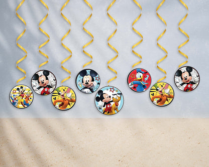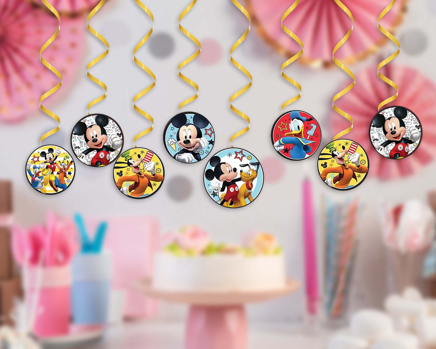 These swirling decorations feature everyone's favorite mouse, Mickey, and his friends! Display these easy-to-hang party decorations above party tables to add an instant element of fun to your event ambiance. Great for birthday parties or Mickey Mouse themed celebrations of any sort, you'll want to add these to your party supplies as a must-have!