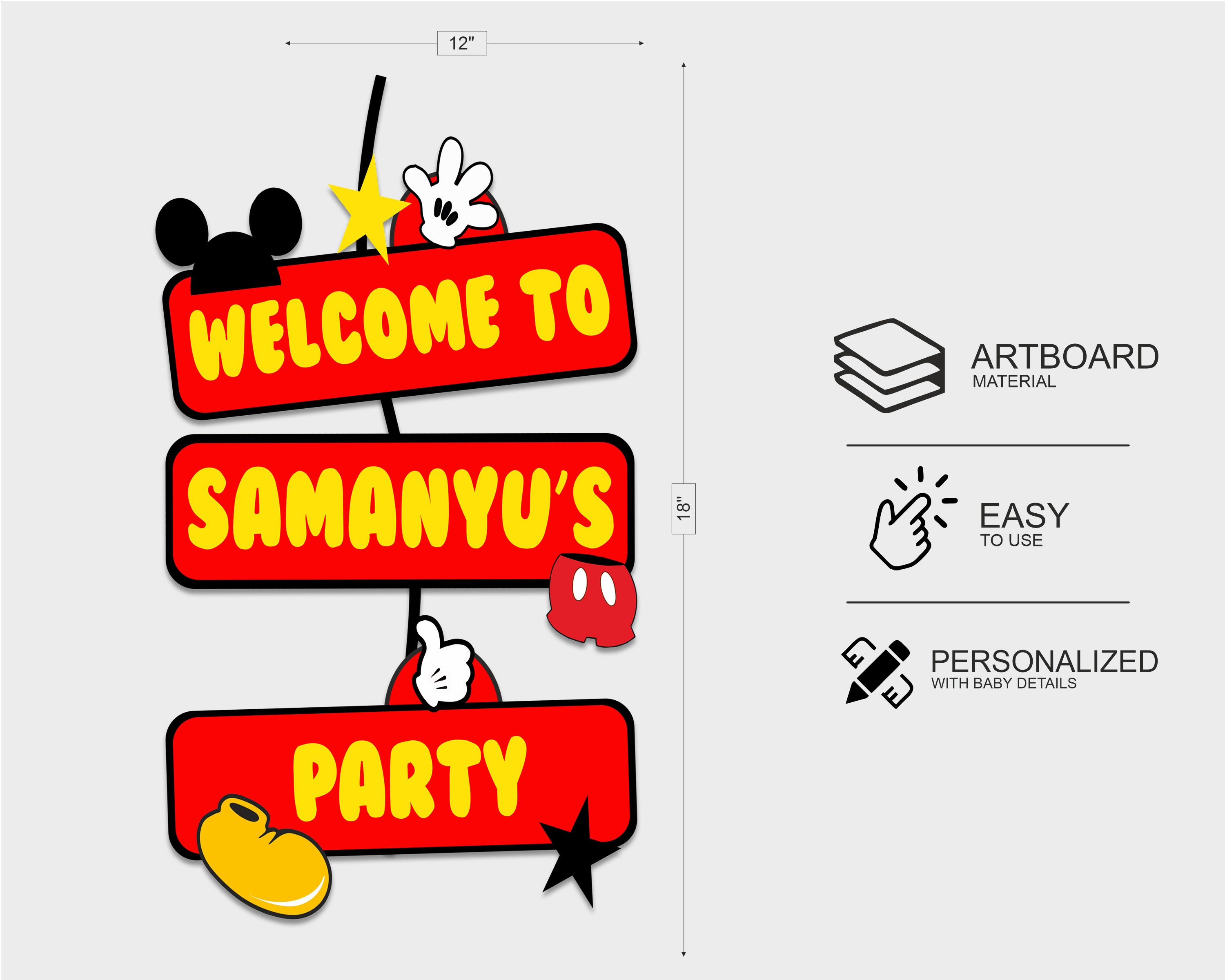 Begin styling an impressive Mickey Mouse party when you choose a Welcome Board! The vivid colors and fun design will greet all of your party guests as they enter. Personalise with the name and age.