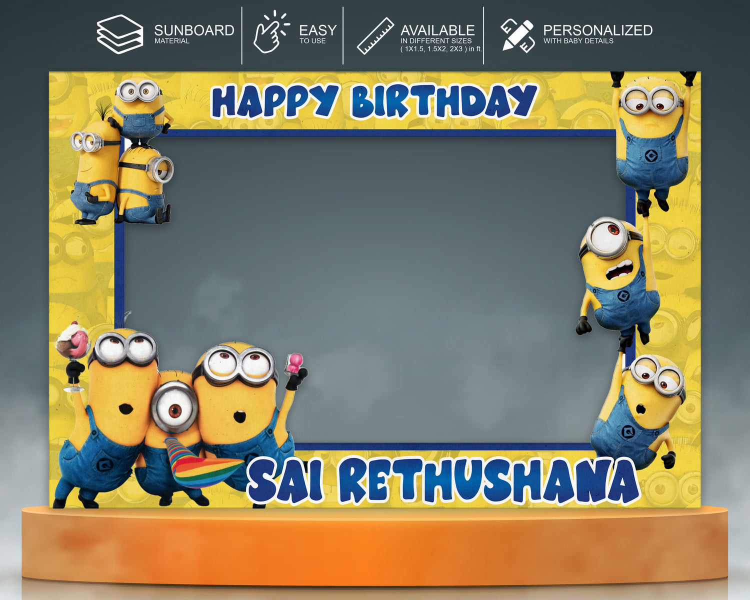 Create a one-of-a-kind scene with a custom Despicable Me backdrop. The cardboard selfie station features 3 friendly minions, a star-studded and confetti-filled background, and space for a personalized message. Complete the decorations for your child's Despicable Me-themed birthday party with this custom photo booth backdrop, so guests can strike a pose for memorable selfies!