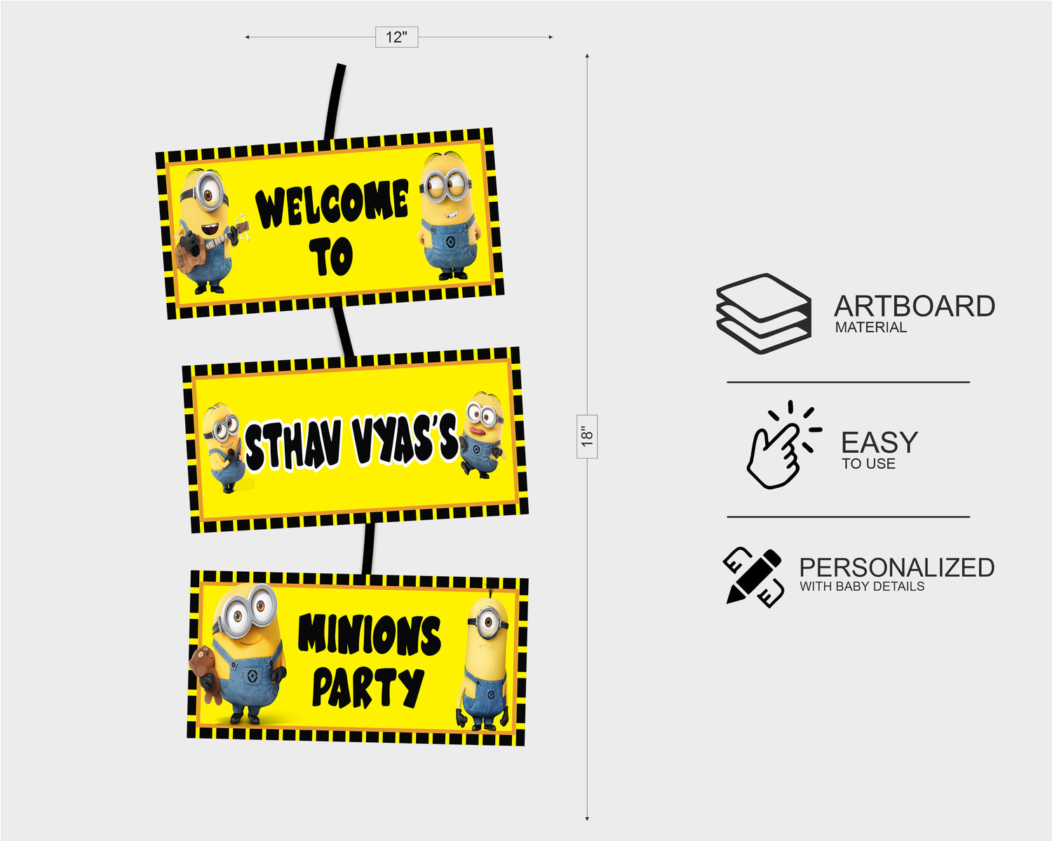 Direct guests to the party with a custom Despicable Me Welcome Board. The colorful sign features a friendly minion, and space to add a personalized message.