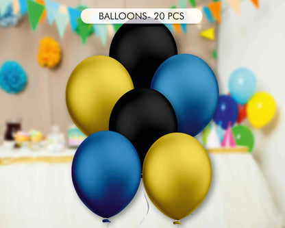 Bring Gru's mischievous yellow buddies to the party with our Minions Personalised Decoration Kit! The Minions are impulsive creatures with little self-control, but with a wide-eyed wonder and odd innocence that endears them to viewers and makes them relatable. They can be pesky when they are doing weird interactions with other people, animals, or objects; they are also famous for their gibberish-speaking language.The décor all in blue, yellow and black with added details and fun will complete the decorations for your little one's Minions party ! Basic Kit is Available for Minions Theme.