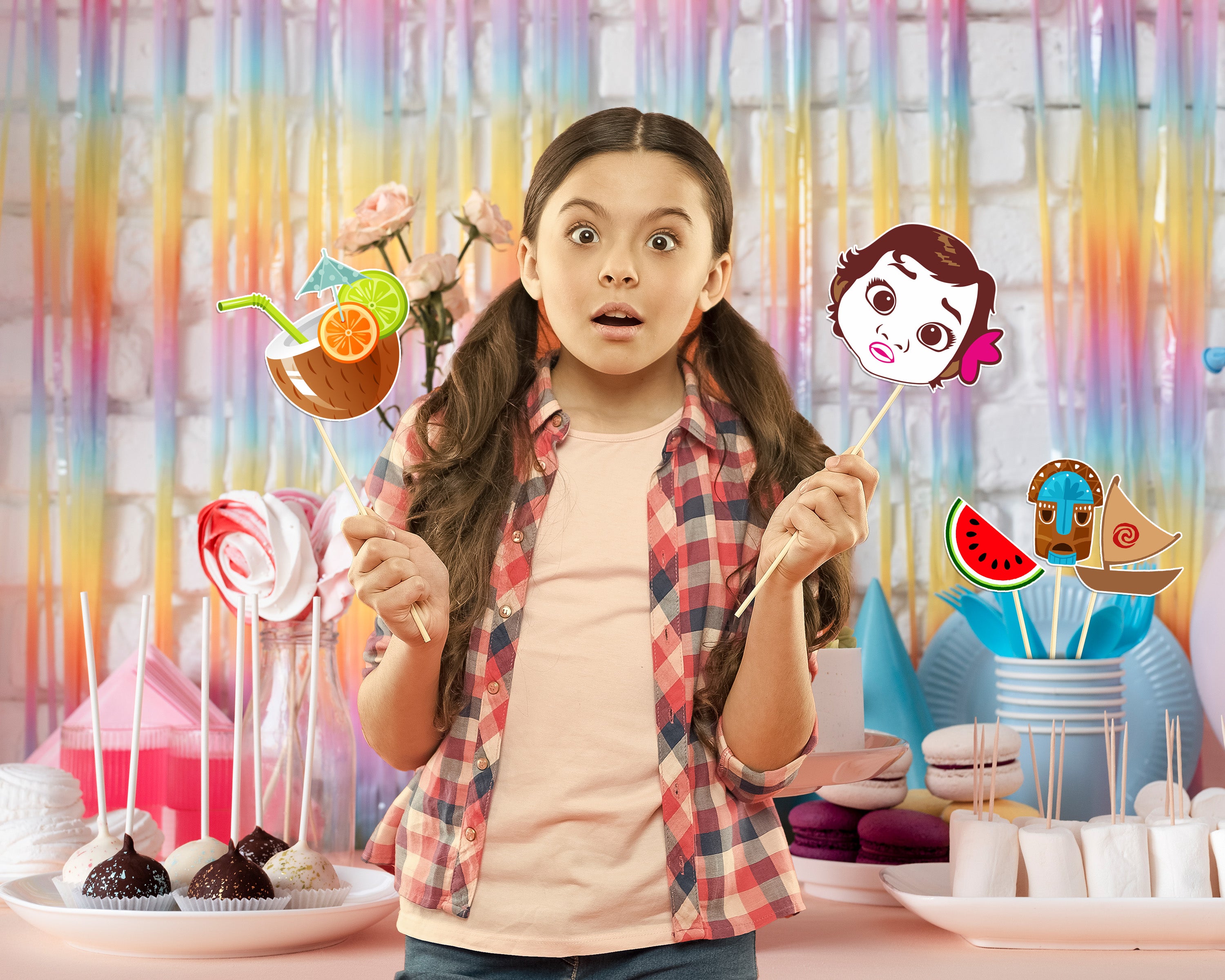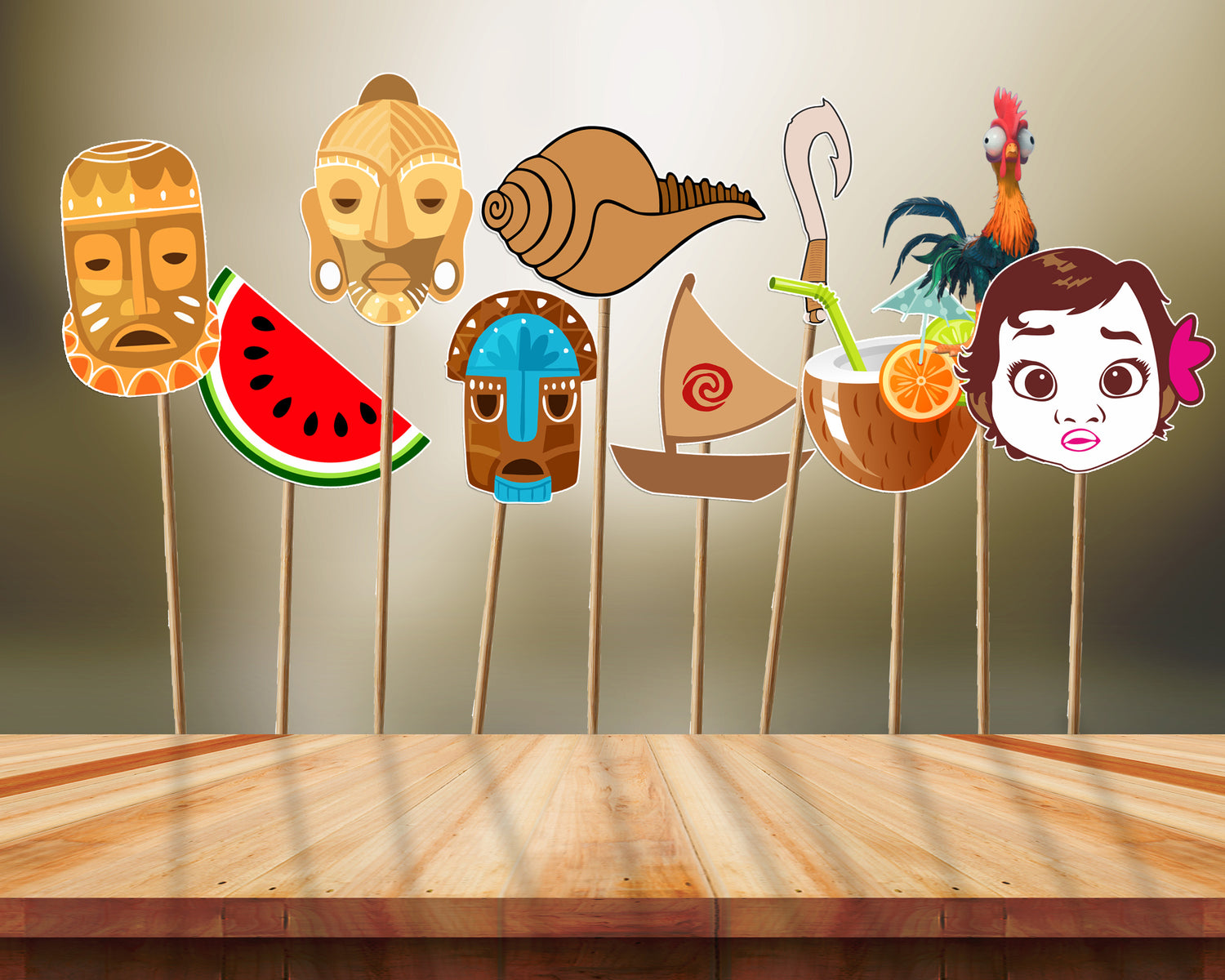 Moana themed Party props come in different shapes to go well with the theme and help make great and memorable pictures.