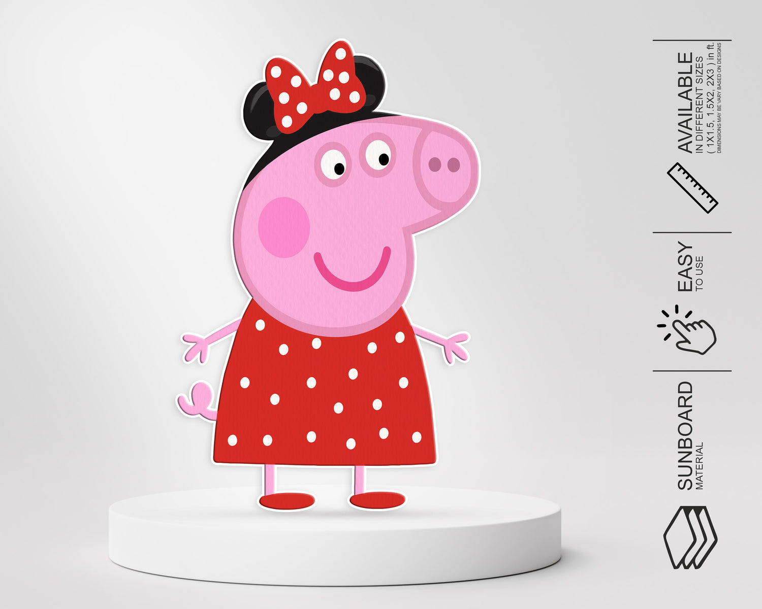 Kids can pig out with Peppa Pig cut-outs! These small cut-outs are essential to your Peppa Pig birthday party to take photos and lighten up the venue!