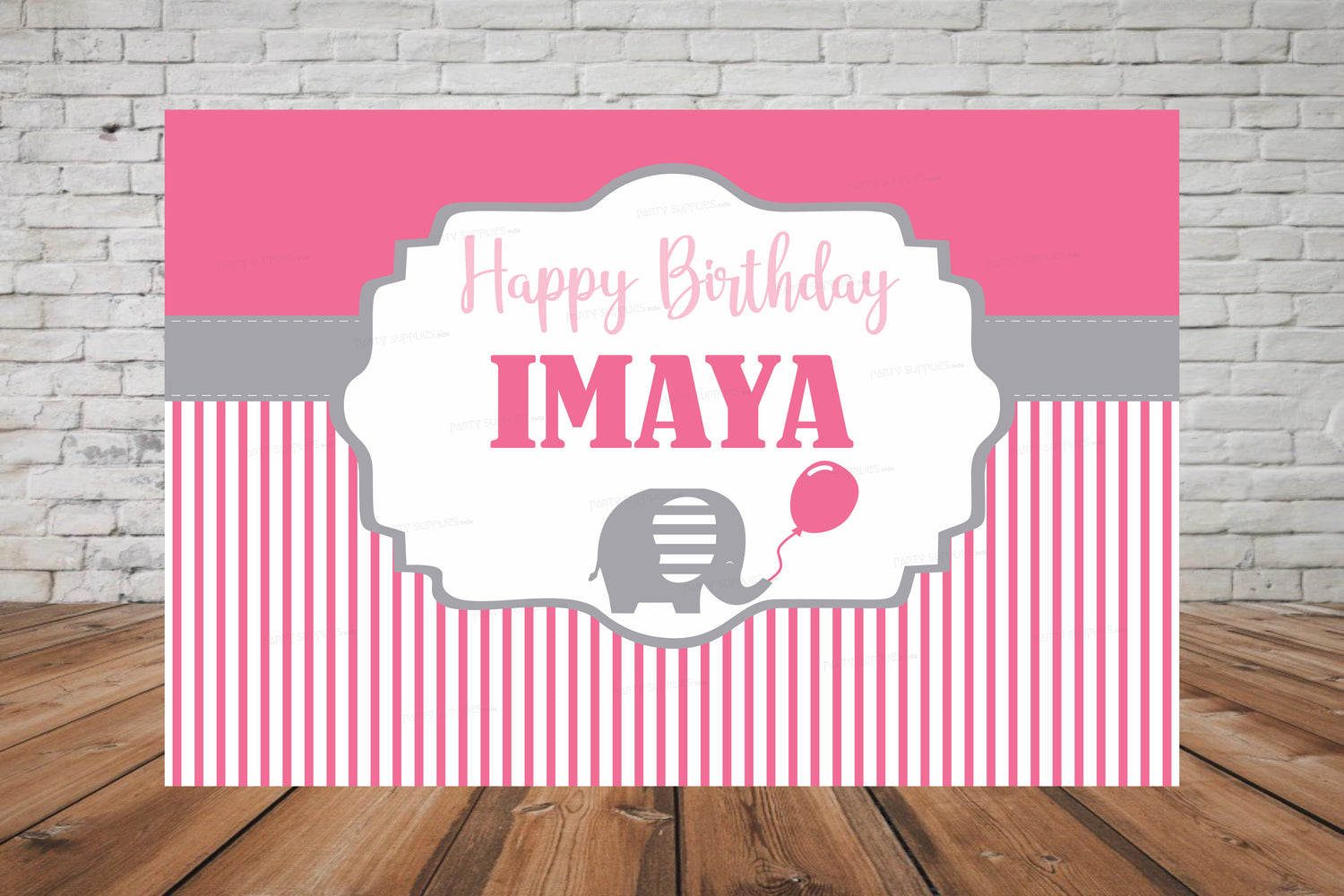The guest of honor at your child's birthday party will feel extra special with this Elephant Custom Photo Banner hanging indoors or outdoors in their honor. This adorable personalized birthday banner features cute elephant graphics, perfect for girls. Personalize with a digital photo and your own message of up to 3 lines with 20 characters/space per line.