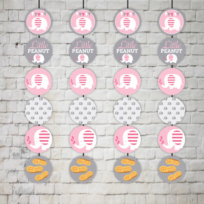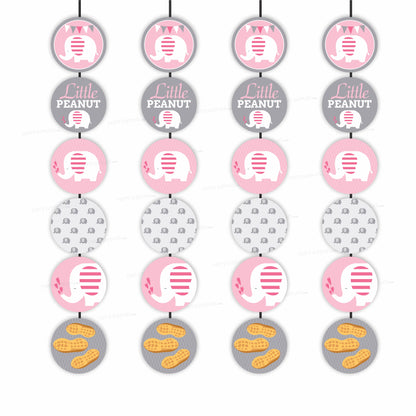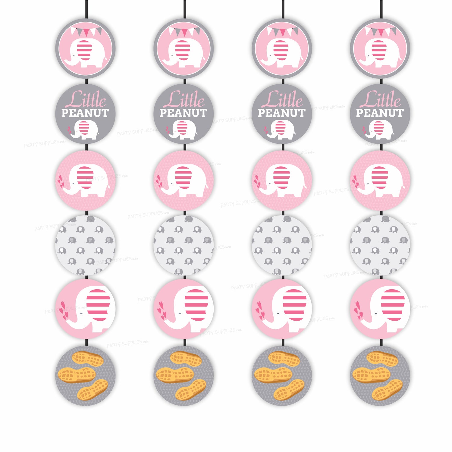 The shower decorations come from using themed party supplies in unique ways and Pink Baby Elephant dangler will help you do just that. These extra large party circles can be used scattered down the center of a table or strung together to make a fun baby shower garland banner. You can also use a hole punch and coordinating ribbon to create fun Pink Baby Elephant themed tags for all of your baby shower craft ideas and favors.