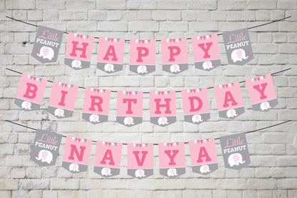 Give their very first birthday a special accent when you hang this adorable Pink Elephant 1st Birthday Garland. With a variety of pennant and flag shapes, this garland will look adorable draped on a wall, over a window or wherever you need a little sprucing up. Can be personalized with the kid's name.