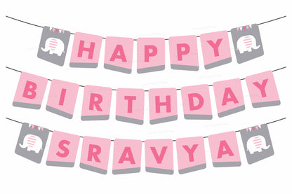 Give their very first birthday a special accent when you hang this adorable Pink Elephant 1st Birthday Garland. With a variety of pennant and flag shapes, this garland will look adorable draped on a wall, over a window or wherever you need a little sprucing up. Can be personalized with the kid's name.