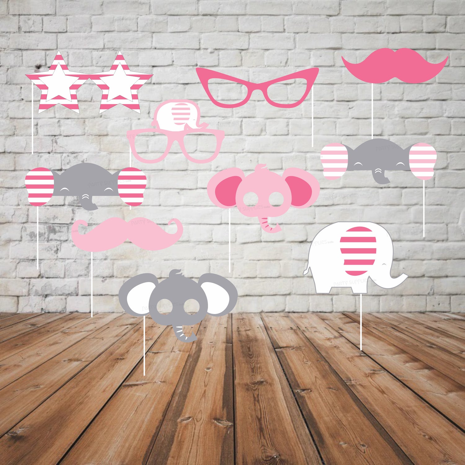The perfect photo booth begins with fabulous photo booth props. Our printed and cut kit will help you easily create fun party photos at your next Pink Elephant party. This Pink Elephant party photo booth props kit come with 10 pieces, one of which is personalized, and ready for quick assembly.