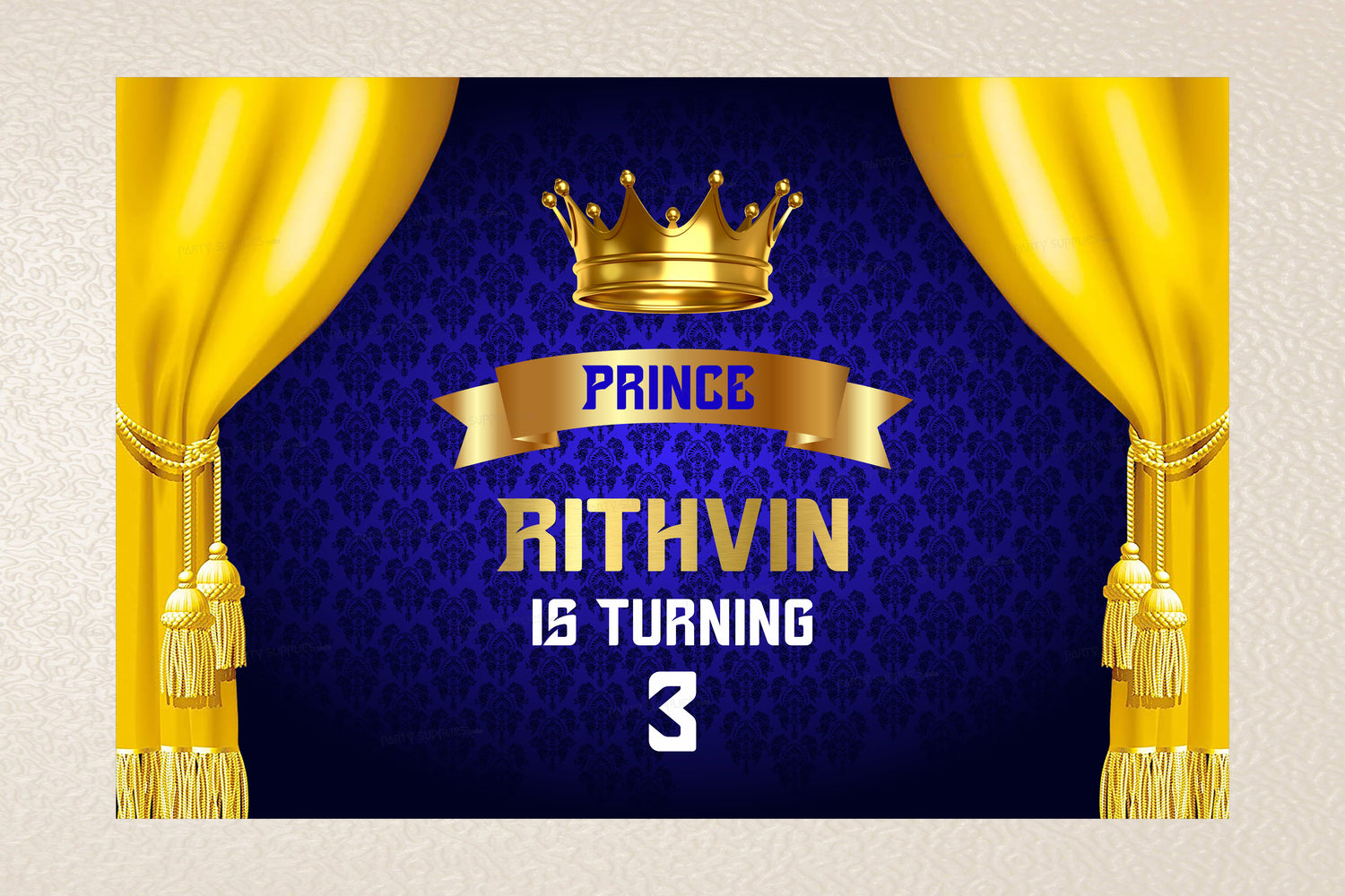 Create goose bump moments, those memories to last a lifetime, when you display custom Happy Birthday backdrop with stakes. Royal Prince Charming Party Professionally printed with vibrant colors, this high-quality back drop is perfect birthday parties. Personalise it too.