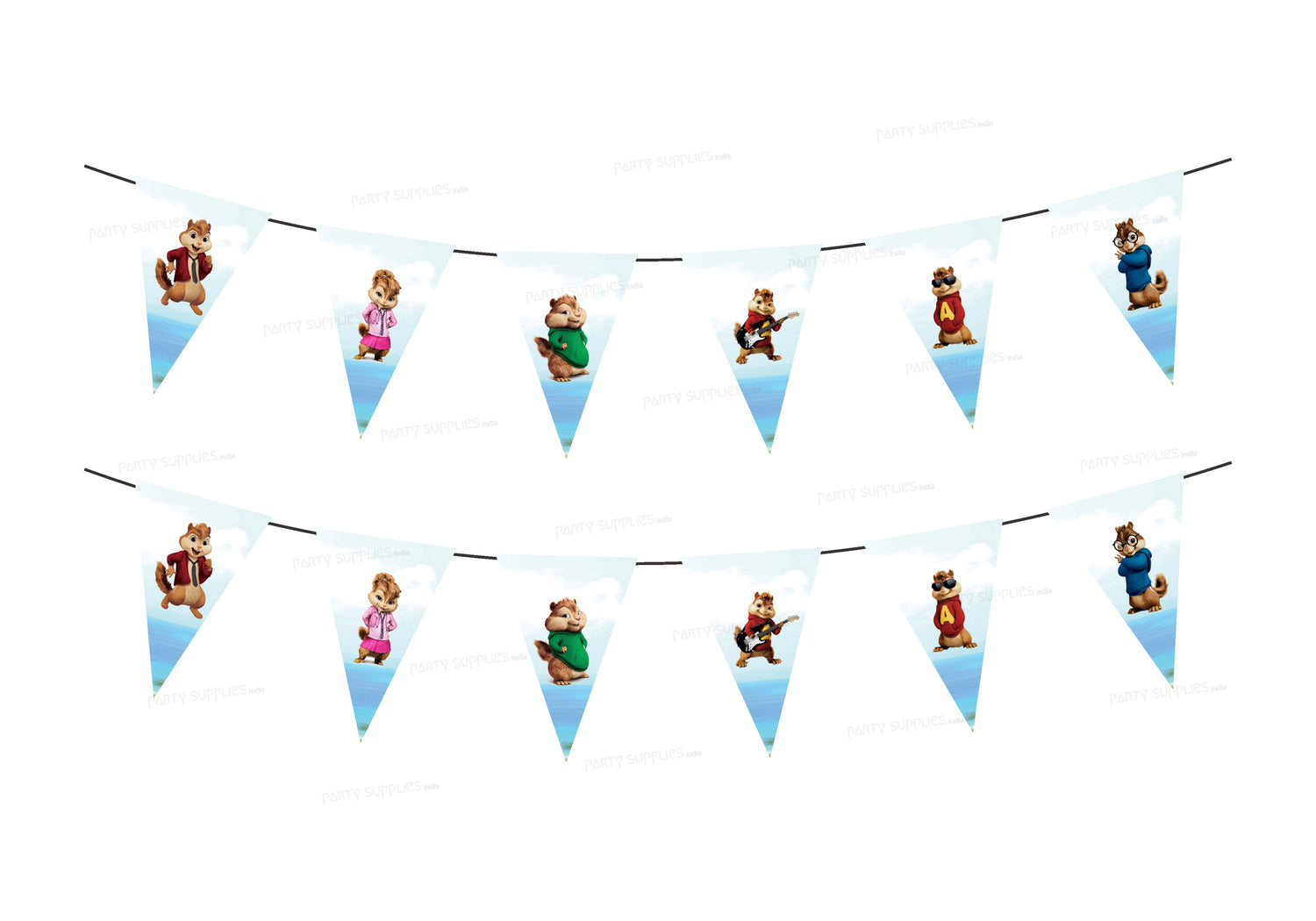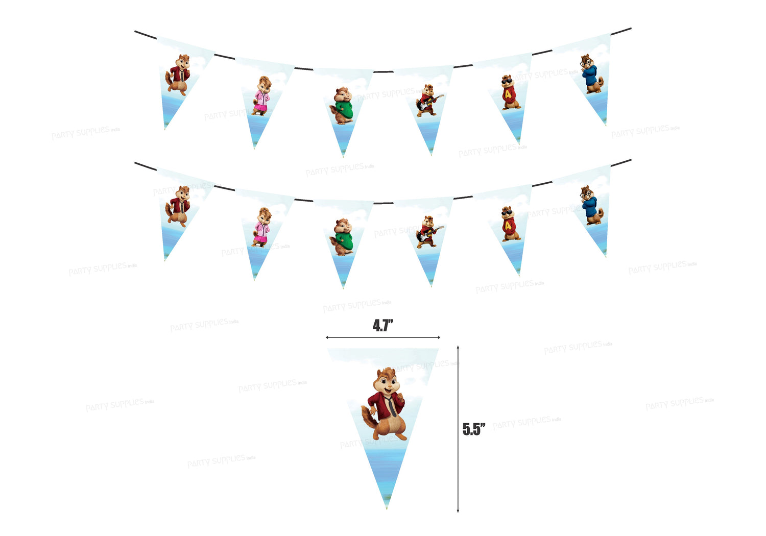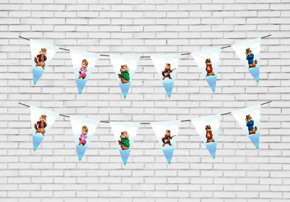 You don't need to stay up all night to decorate when you can use a Alvin and Chipmunks Birthday Banner Kit! The each cardstock features one of the Alvin and Chipmunks characters or their respective logos against a colorful background. Customize the center cutout with the age of your little hero with the included number stickers! Easily hang the cardstock banner by the strings for a super addition to your child's birthday party.