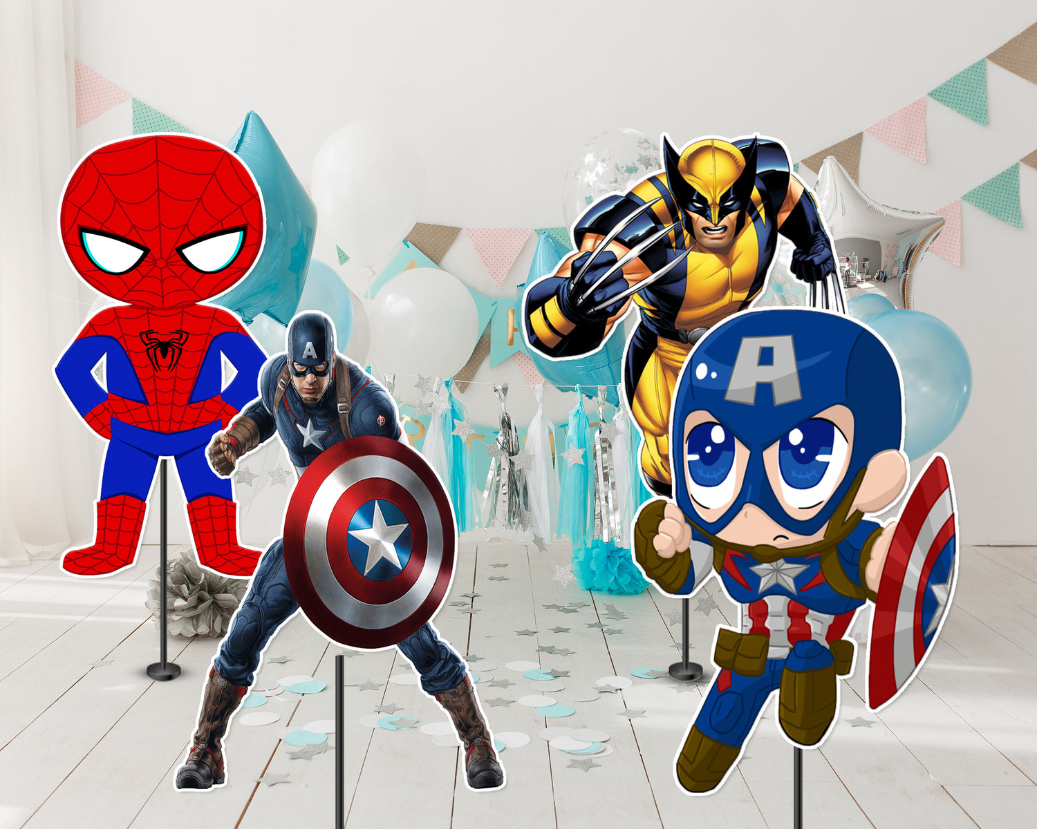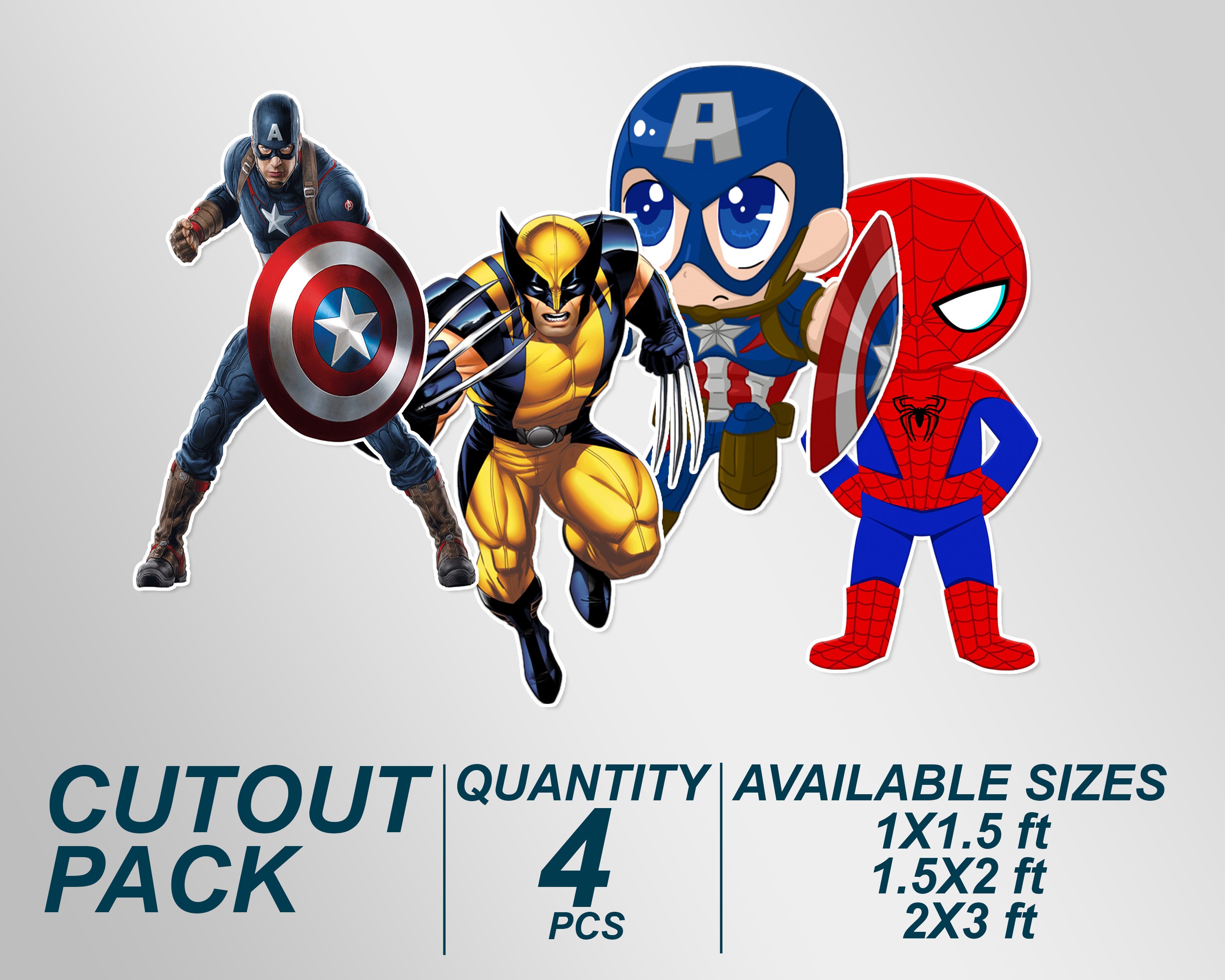 Make your Avengers party decor complete with this cutout combo, available in 3 different sizes. You will receive 4 cutouts as shown in the images, with the single size you choose from the variations below. No stand will be provided, but each cutout will come with double-sided tape at the back which allows you to paste it onto any surface. It can also stand it with simple support from a wall or table.