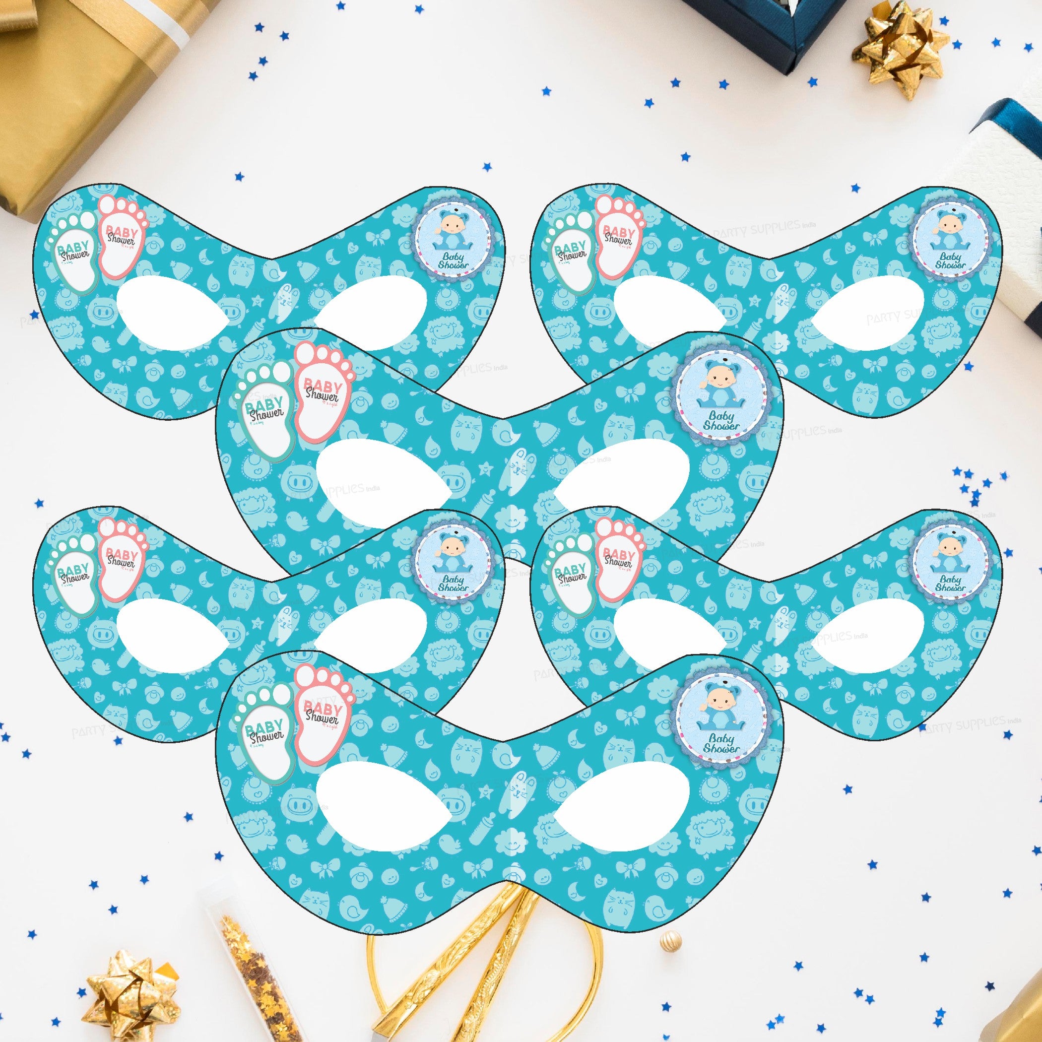 Creating colourful birthday party decoration with Baby Shower theme based eyemask. Get colourfull eyemasks for birthday party event for your lovely kids . The package includes 5 - 10 Masks, each with an attached elastic string.