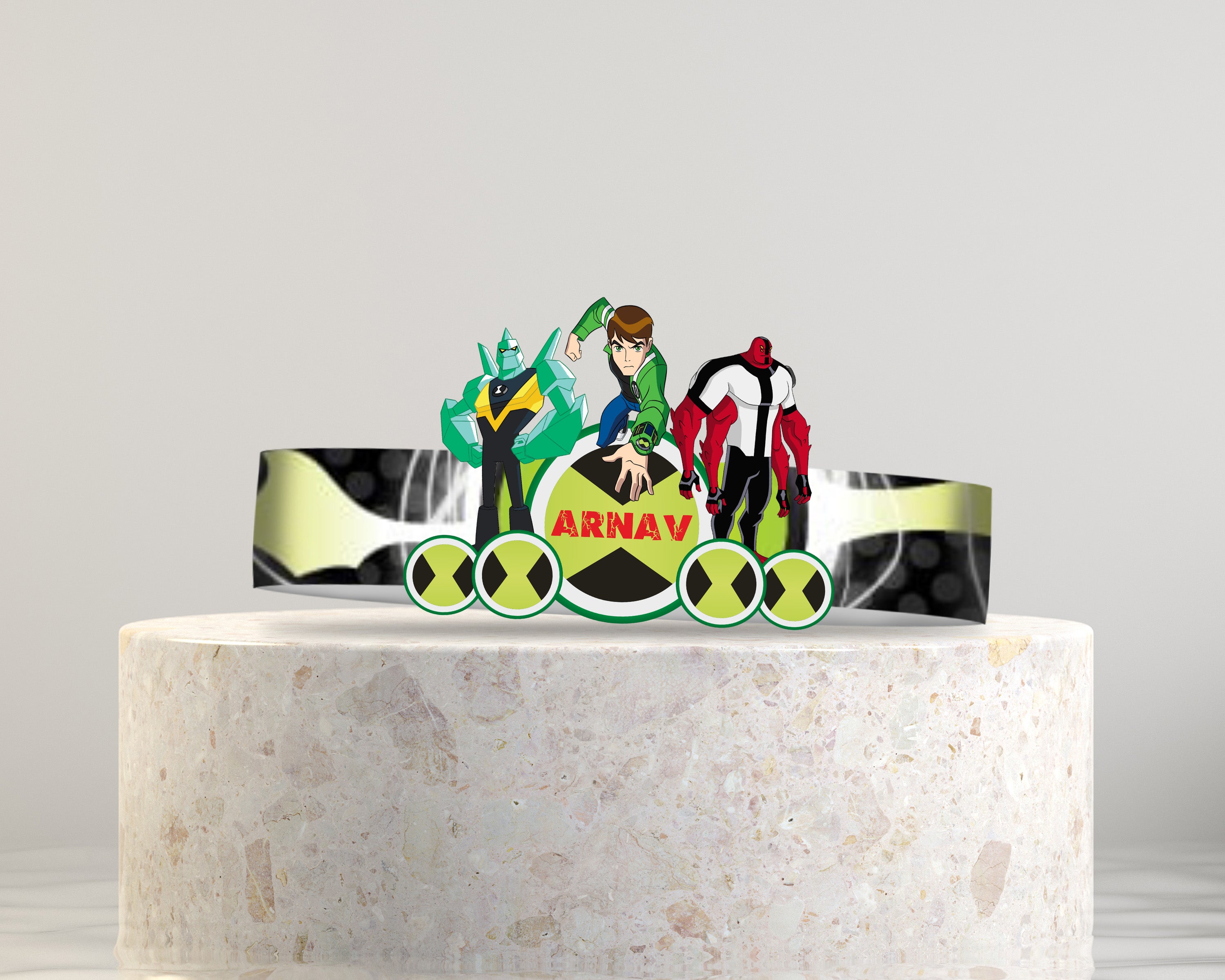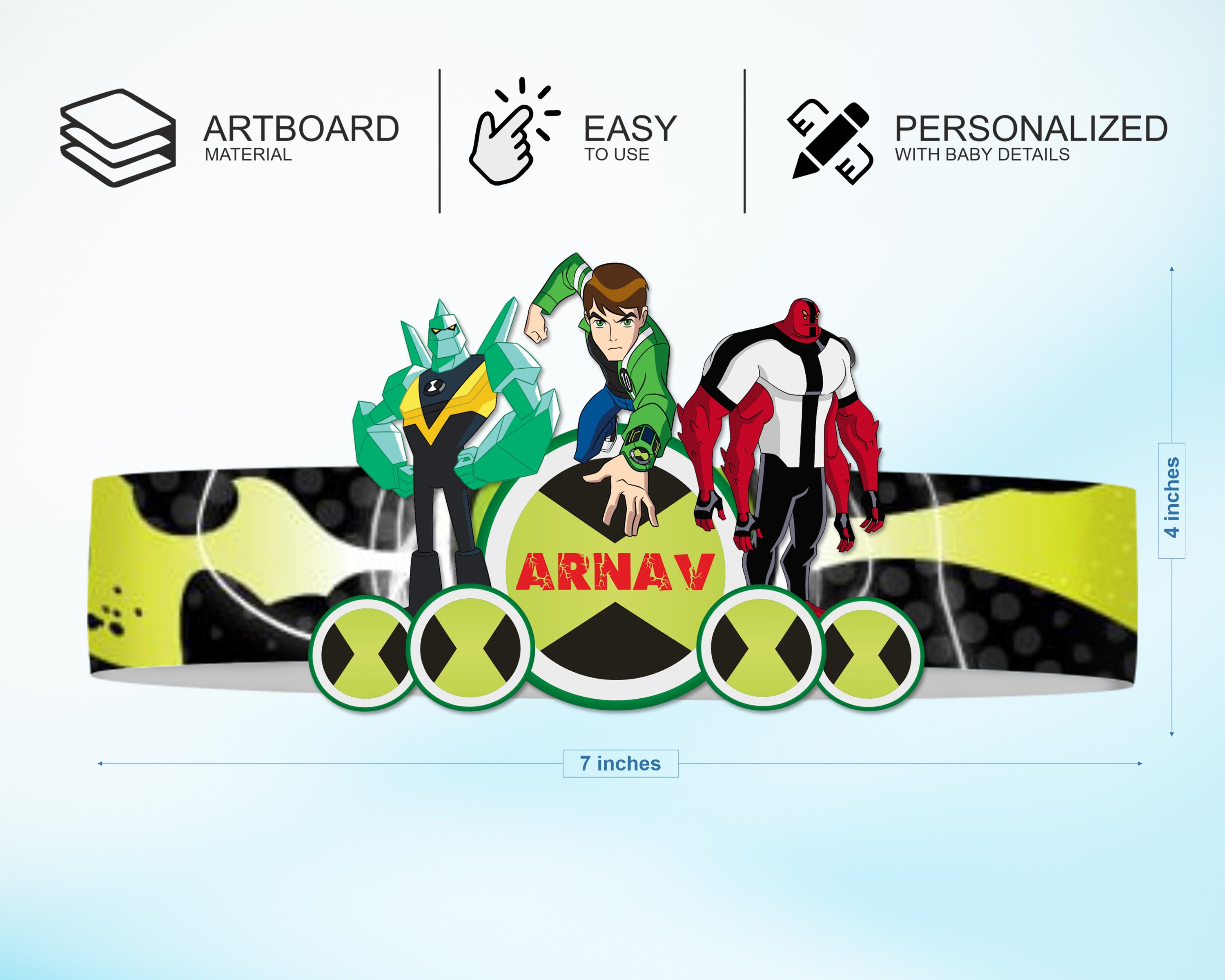 A personalized crown hat based on the Ben10 theme, made of thick paperboard material, is ideal for celebrating kids' birthday parties.