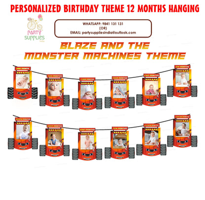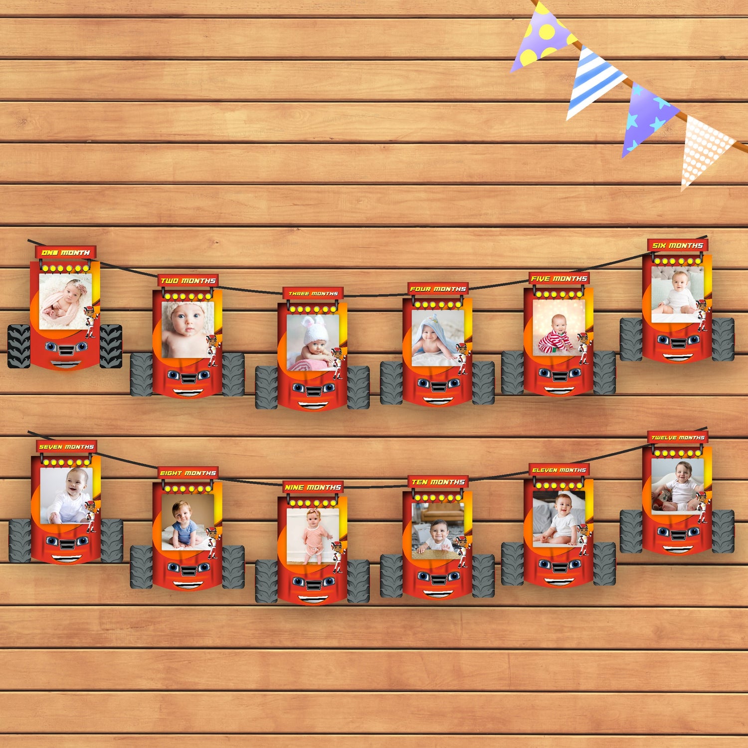 The Blaze and the Monster theme based photo banner is perfect decoration for baby's 1st birthday party. It’s an eye-catching birthday banner with beautiful color, especially with lovely photos of your baby on it which is a special way to bringing a unforgettable and memorable party. This 12 Months Birthday Banner is made of 225 GSM quality Art board material. This package contains 1 set photo banner with ribbon. Size of each month banner will be 6 inches of width and 9 inches of height.