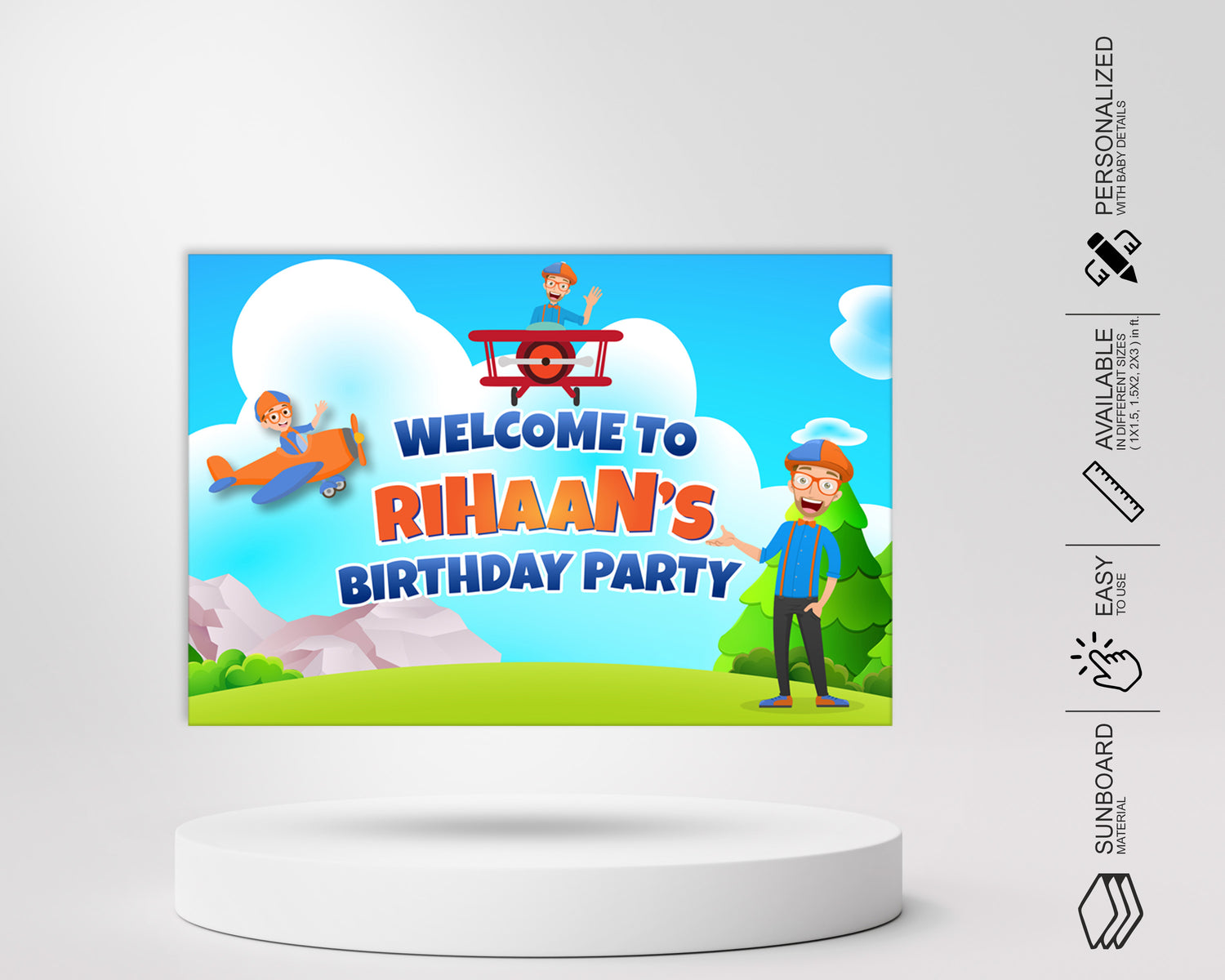 This Blippi theme customized welcome board becoming an increasingly significant element of event occasion to welcome the guests and also make the fabulous day. It comes with different variant sizes.