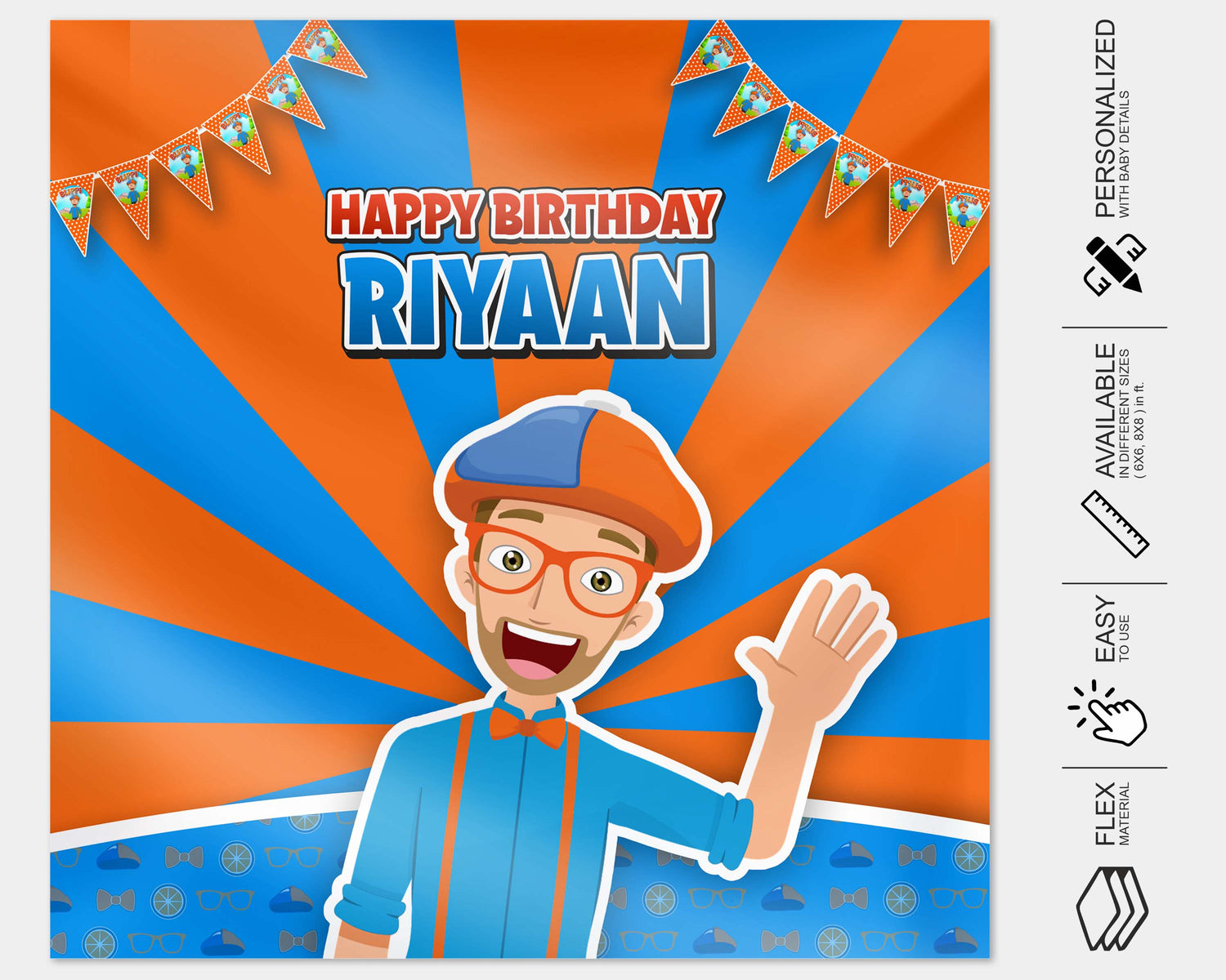 This Blippi theme based Square Backdrop can be personalized with your baby details. You can share the baby details in form provided below. It comes with different variant sizes.