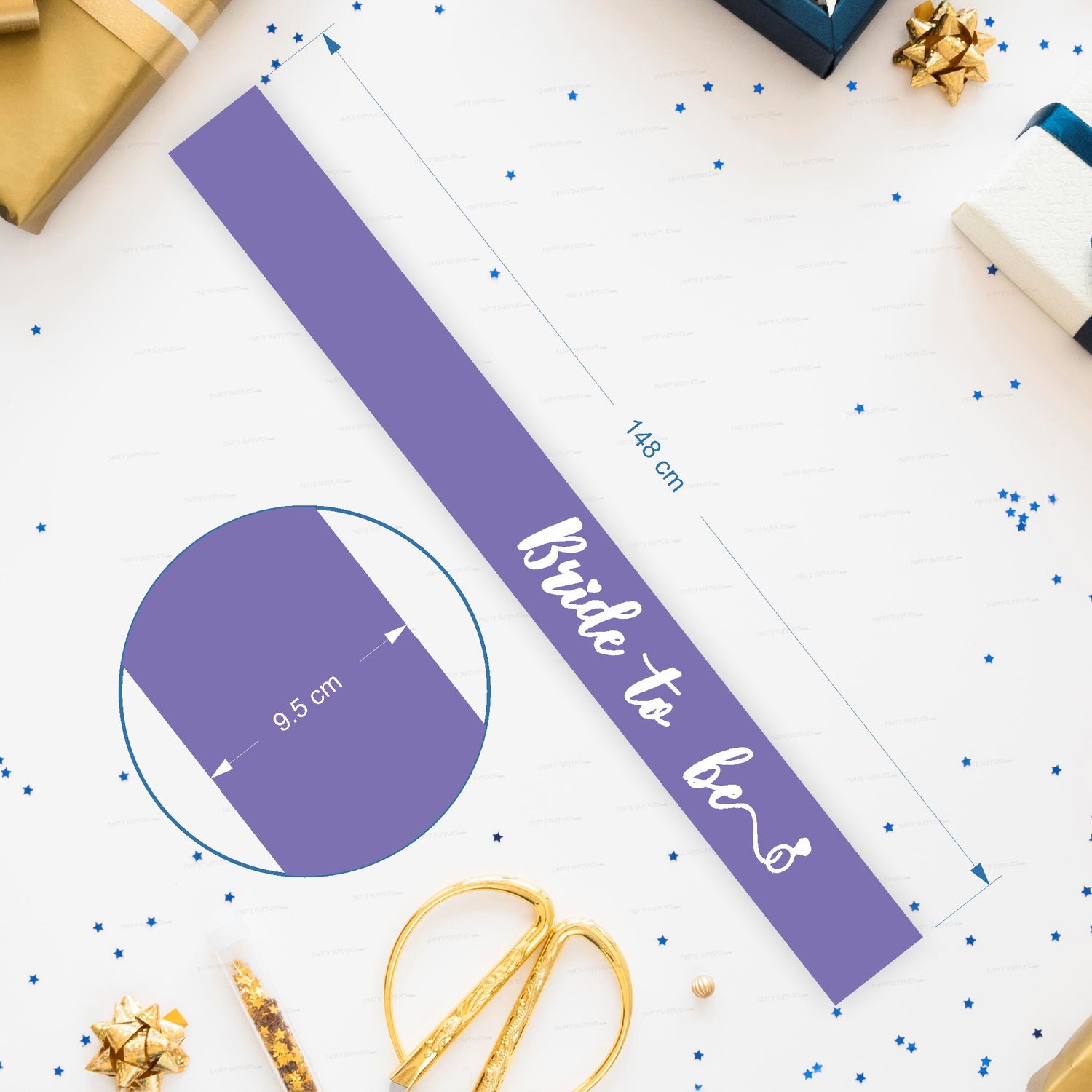 Our Bride to Be Purple Satin Party Sash is made of 100% polyester, premium quality satin. It's your special day and we want you to look AMAZING! The sash size is of 148 cm of length and 9.5 cm of width