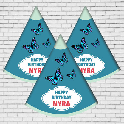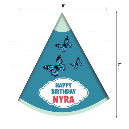 Top off your party supplies with these dazzlers! With a butterfly design on pink background, these  Cone Party Hats are sure to wow your guests and can match your Butterfly theme.
