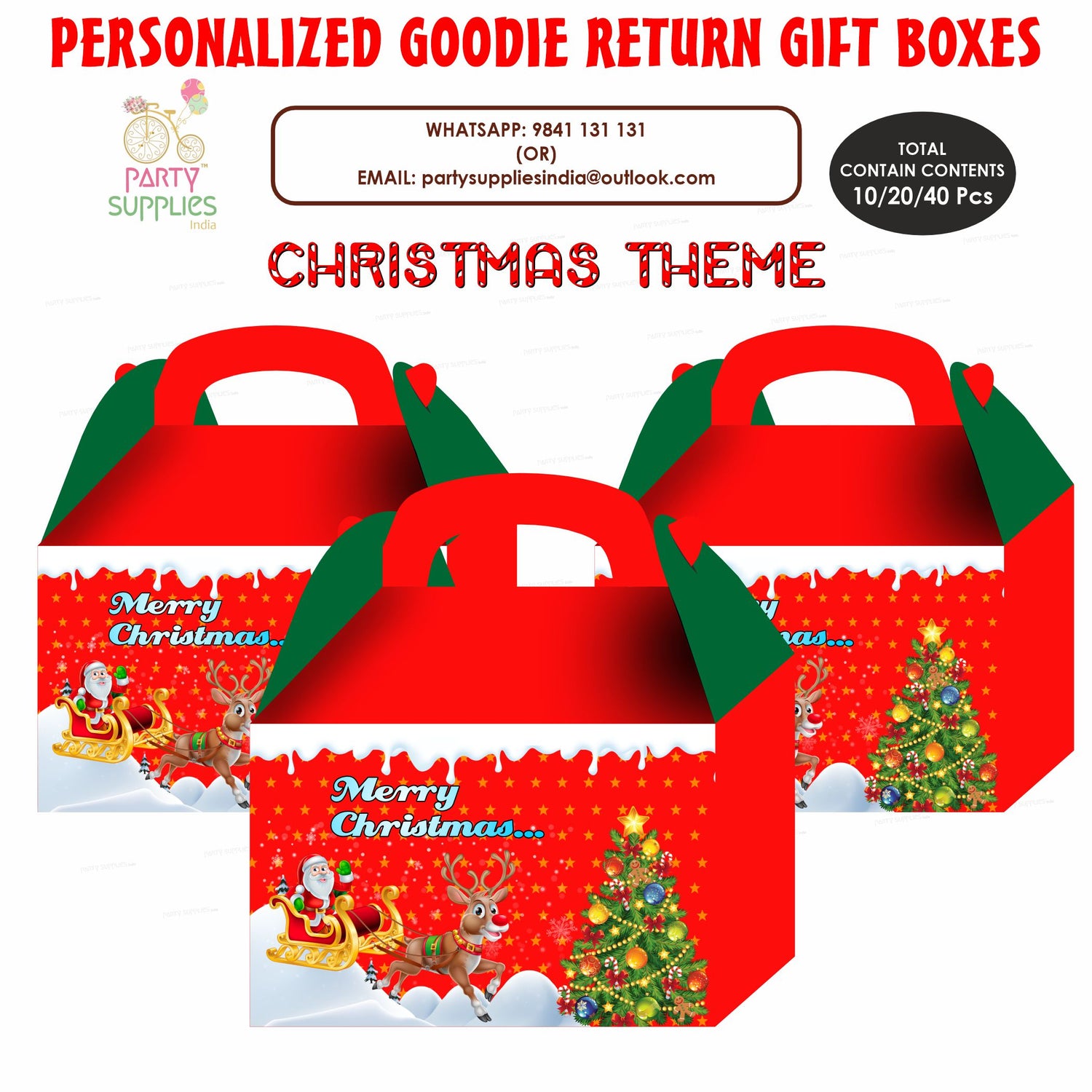 Colorful and Christmas theme based Goodie return gift boxes for take away gifts for guests. Made of 225 GSM quality Art board material to withstand up to 200g to 400g of weight. This boxes can be used to gift items like Chocolates, Cookies, Cup cakes, etc..