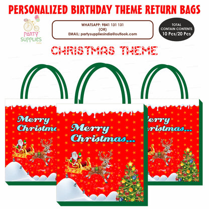 Colorful and Christmas theme based return gift bag for take away gifts for guests. Made of 225 GSM quality Art board material and it can withstand upto 400g to 600g of weight also will have satin ribbon at the top to hold it (Colour of satin ribbon will be based on availability).