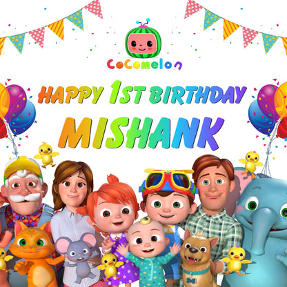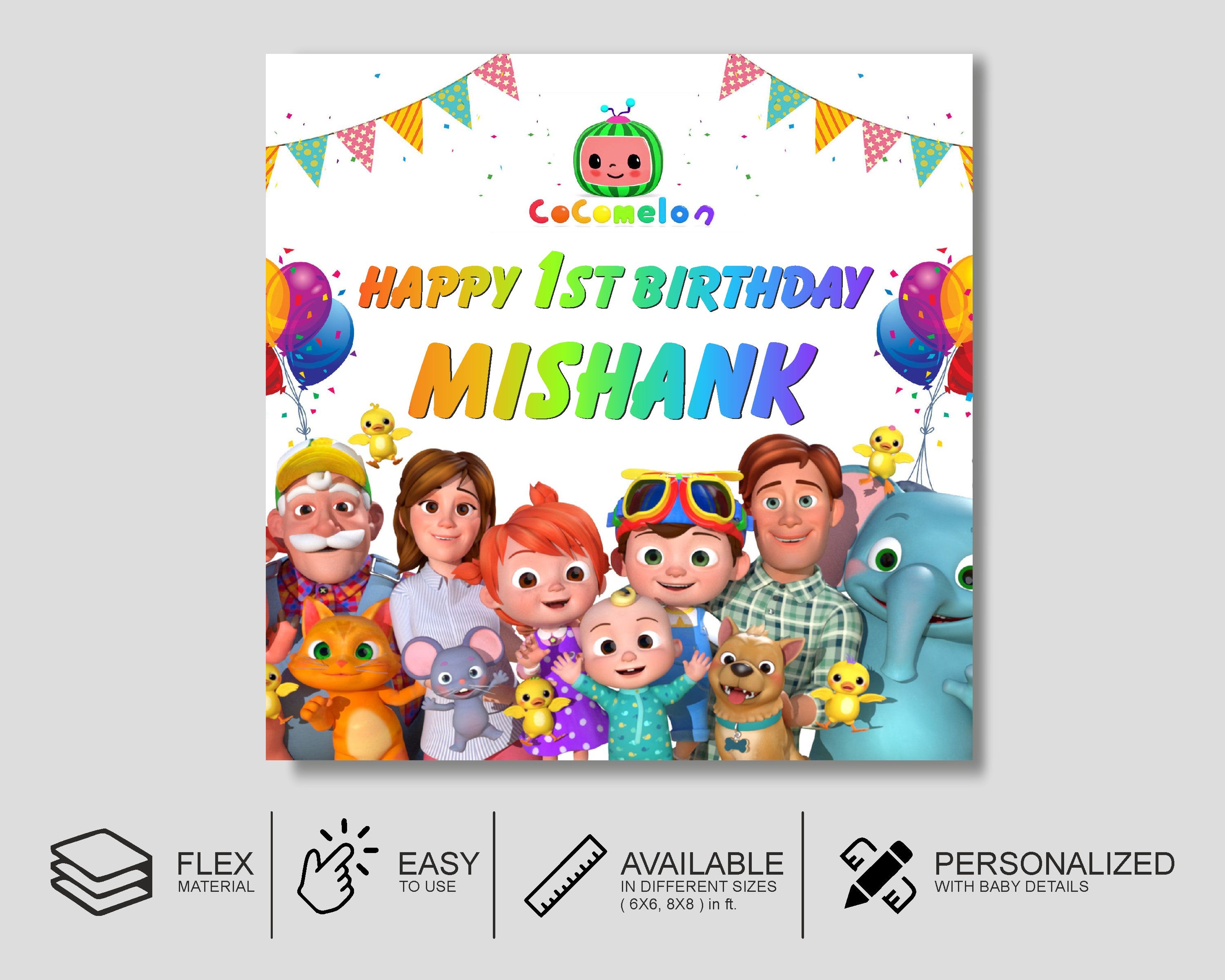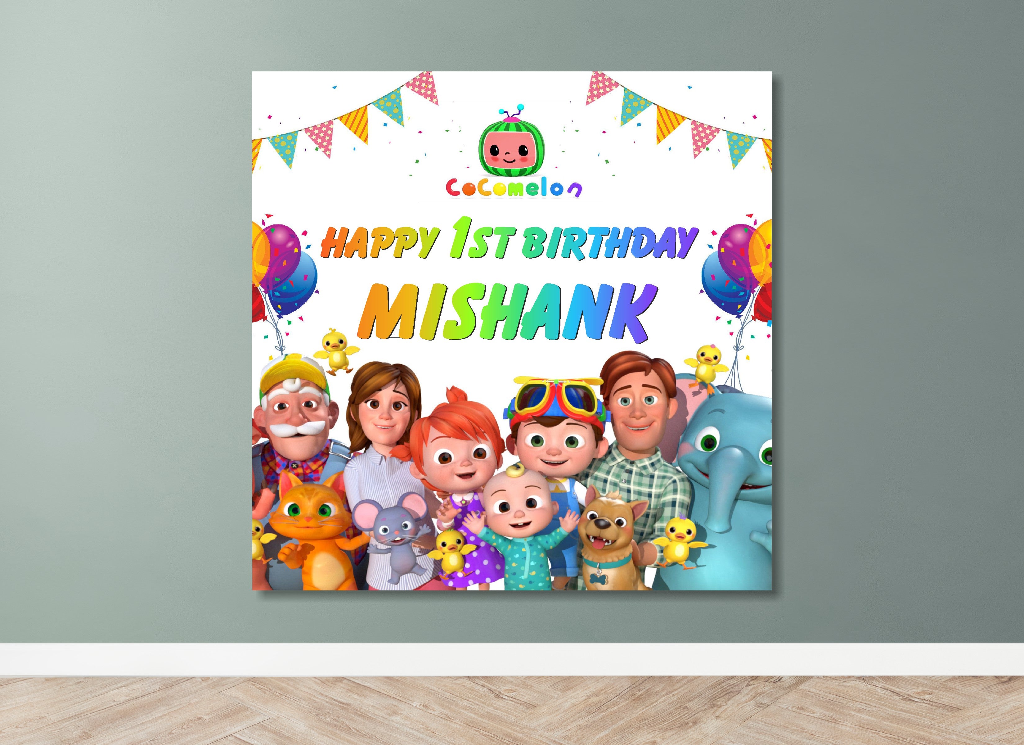 This Coco Melon boy theme based Square Backdrop can be personalized with your baby details. You can share the baby details in form provided below. It comes with different variant sizes.