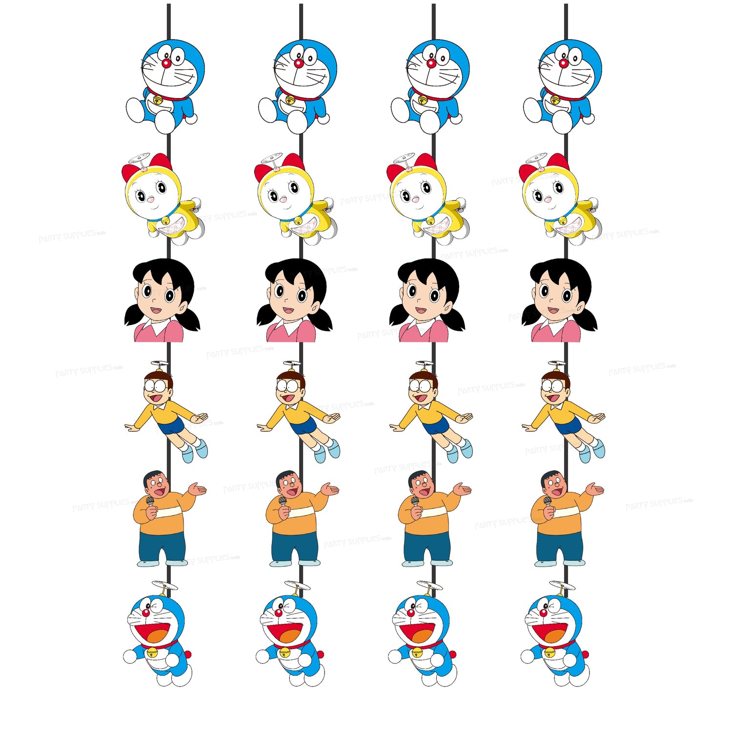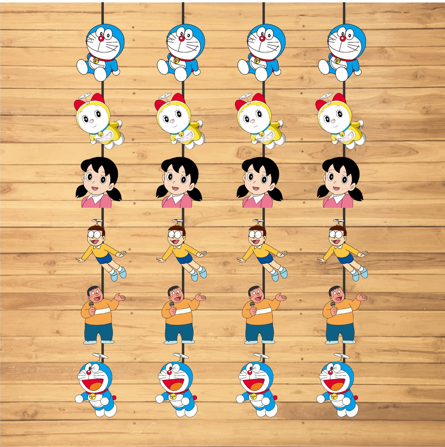 These danglers will be the perfect accent to any party. The danglers hang from the ceiling and can be placed anywhere. They have different pictures of Doremon, Dorami, Nobita and Shizuka. You may hang them at different heights for a delightful effect.