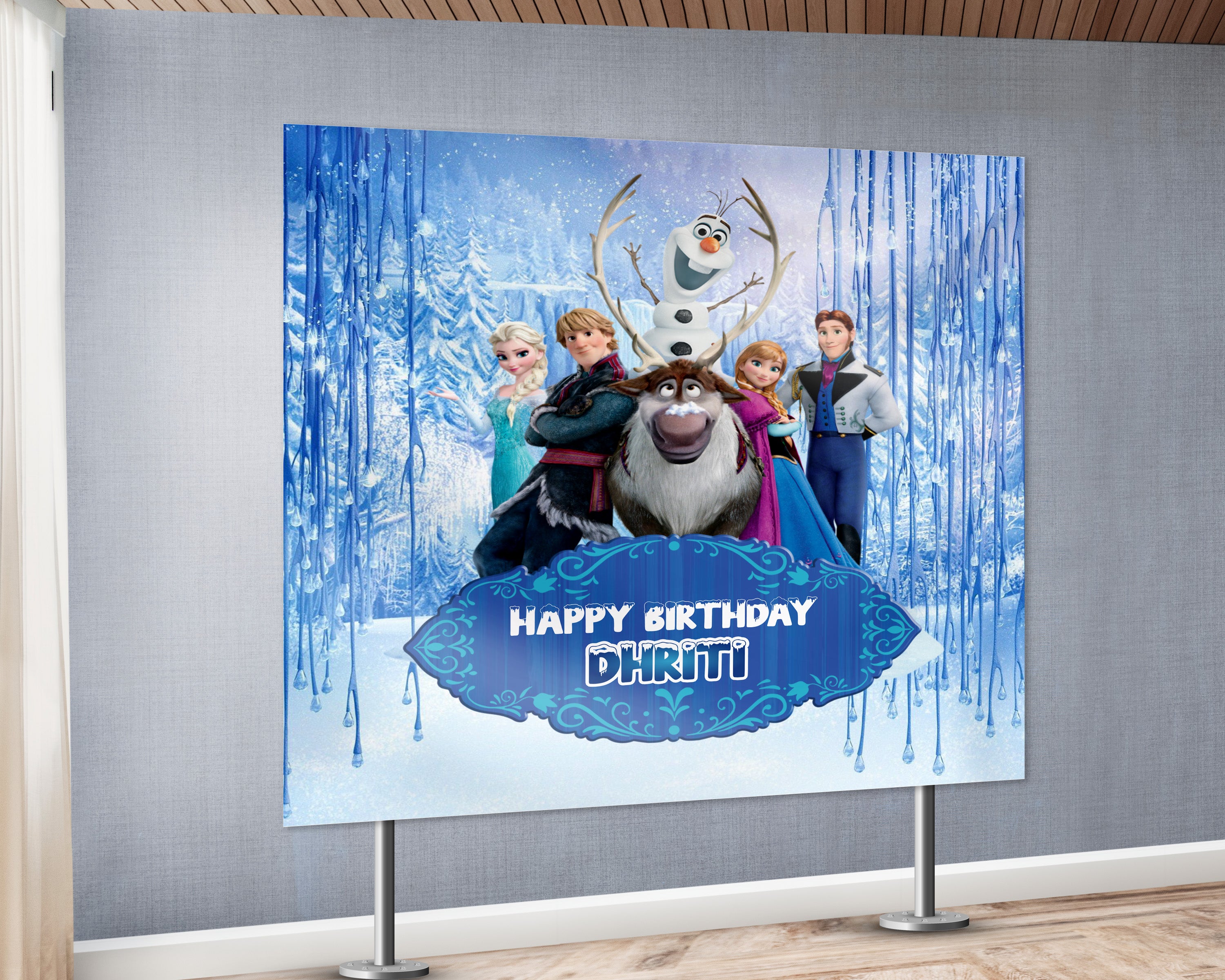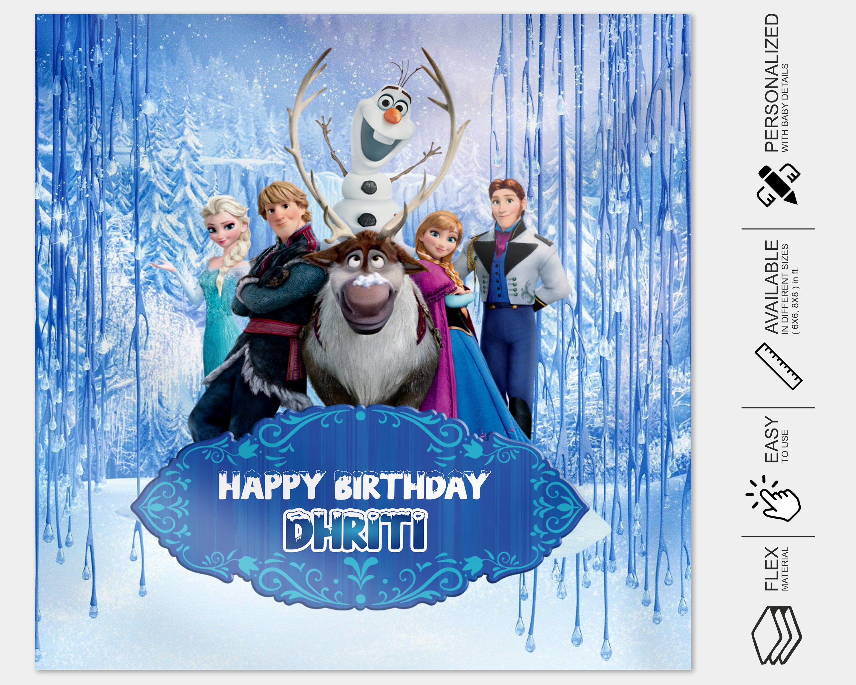 This Frozen theme based Square Backdrop can be personalized with your baby details. You can share the baby details in form provided below. It comes with different variant sizes.