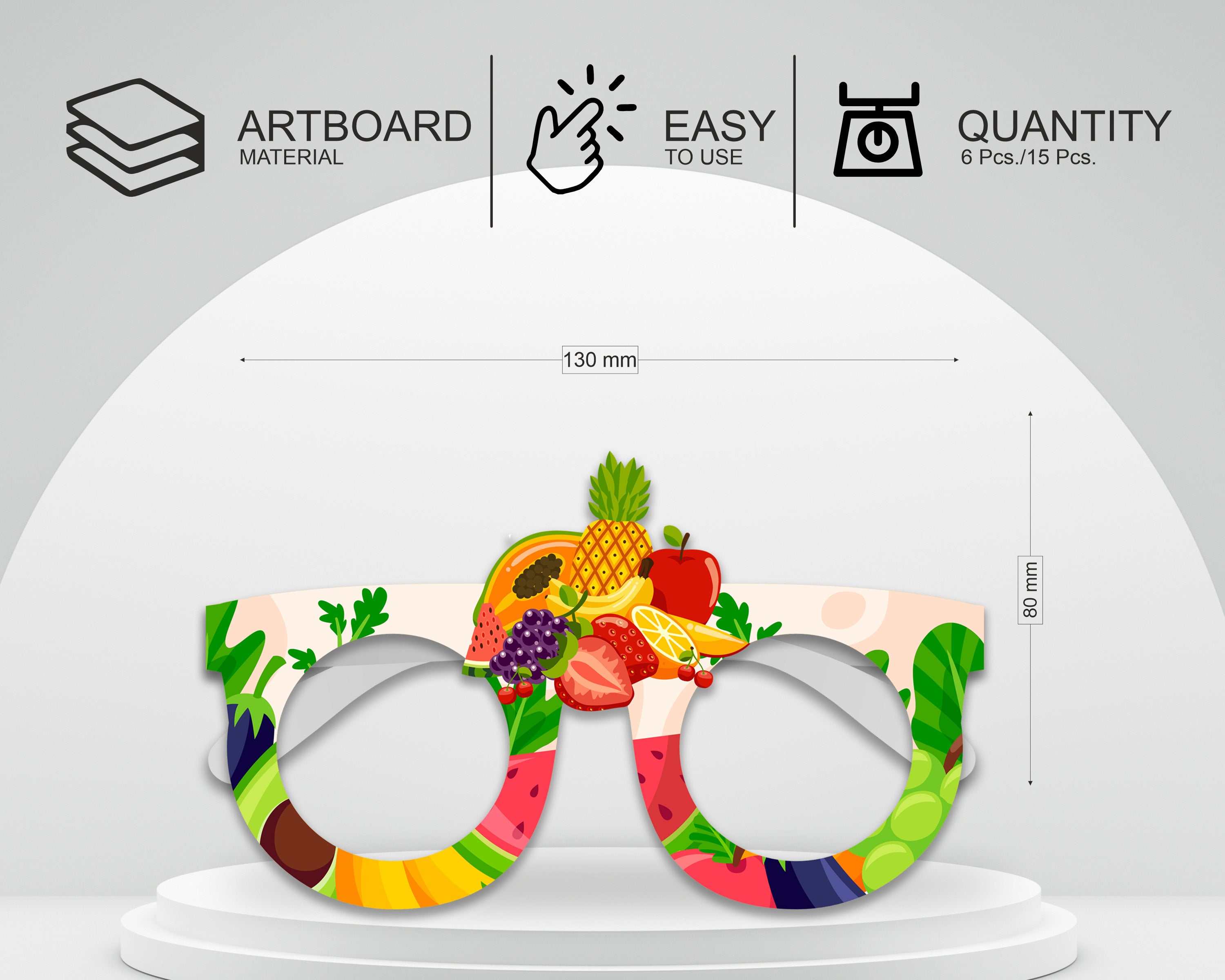 Fruits Theme based eye glasses made of thick paper material for kids birthday party celebrations. This paper goggles suits perfect for kids.