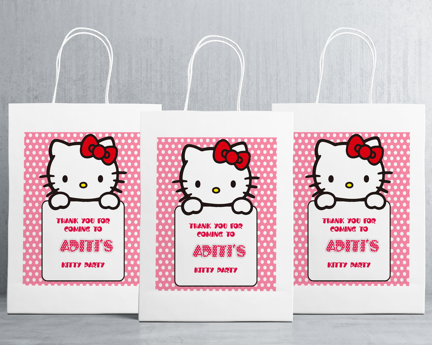 Theme based return gift bag personalized with baby name for take away gifts for guests. It is a Plain white 260 GSM Quality Art
