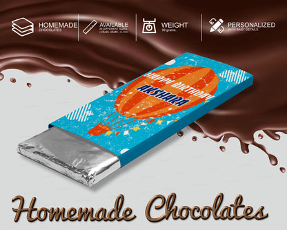 The chocolates are sourced from the finest homemade chocolate makers, and the wrappers are personalized with the baby's name by us, adding a special touch to these sweet treats. Your guests will love receiving
