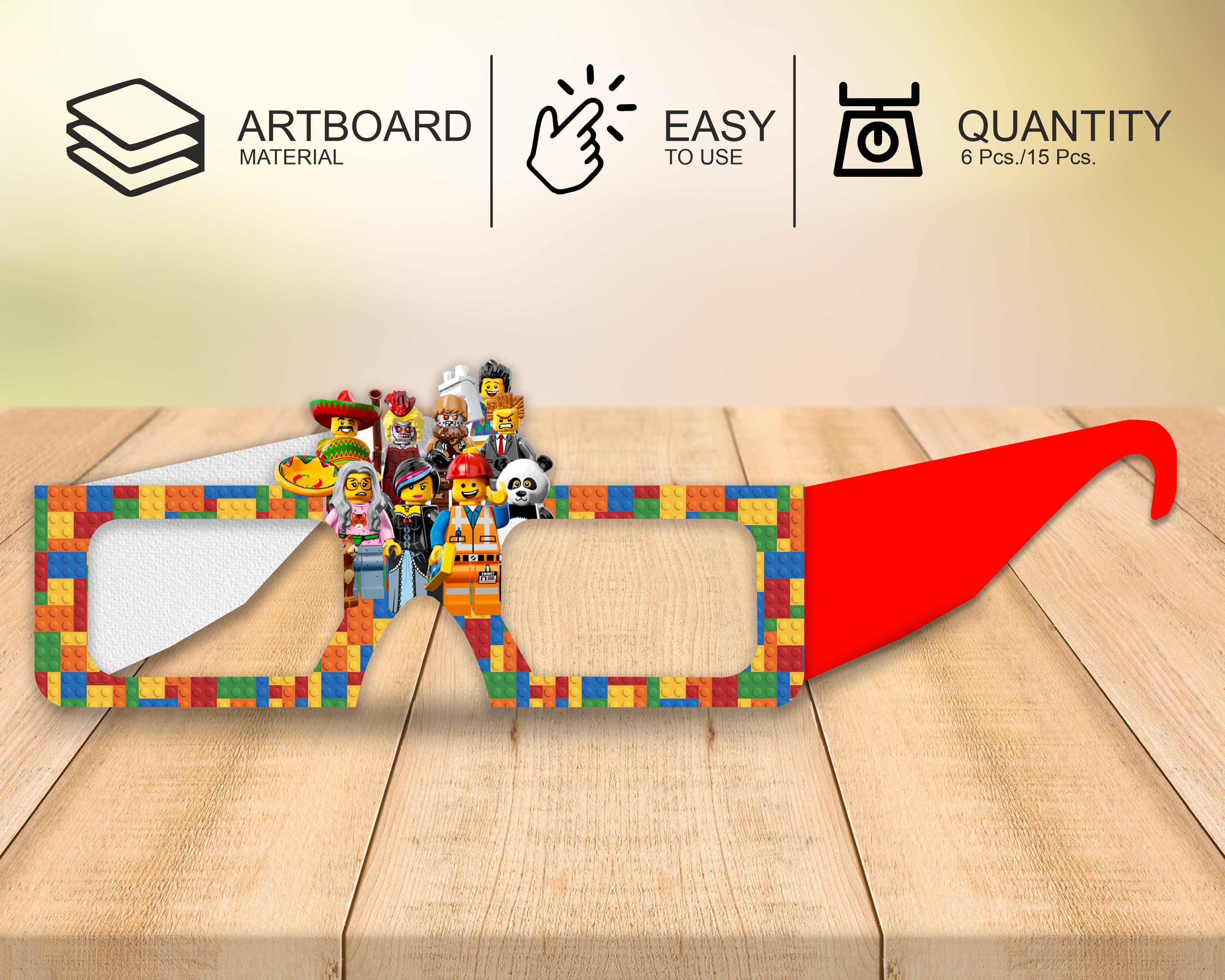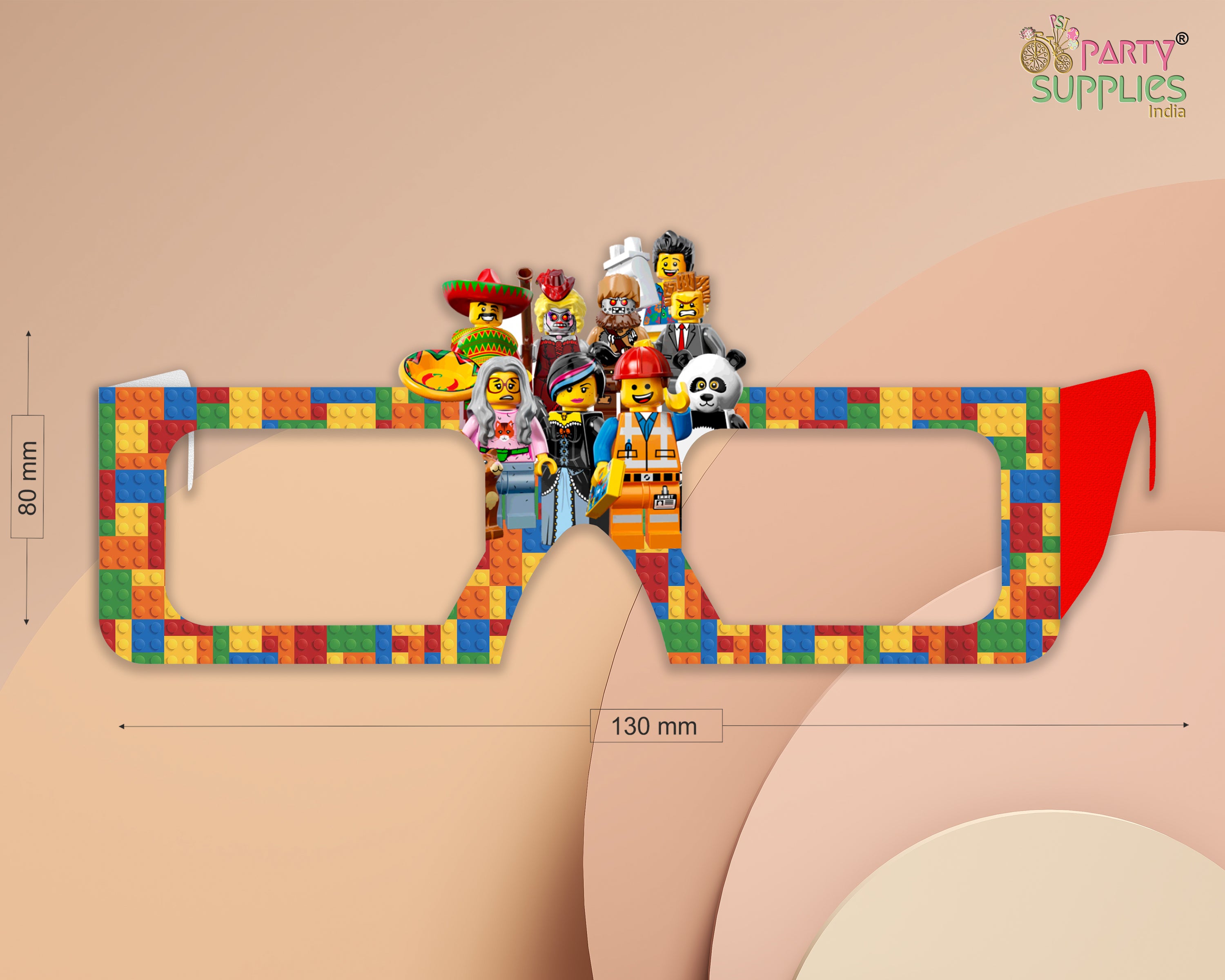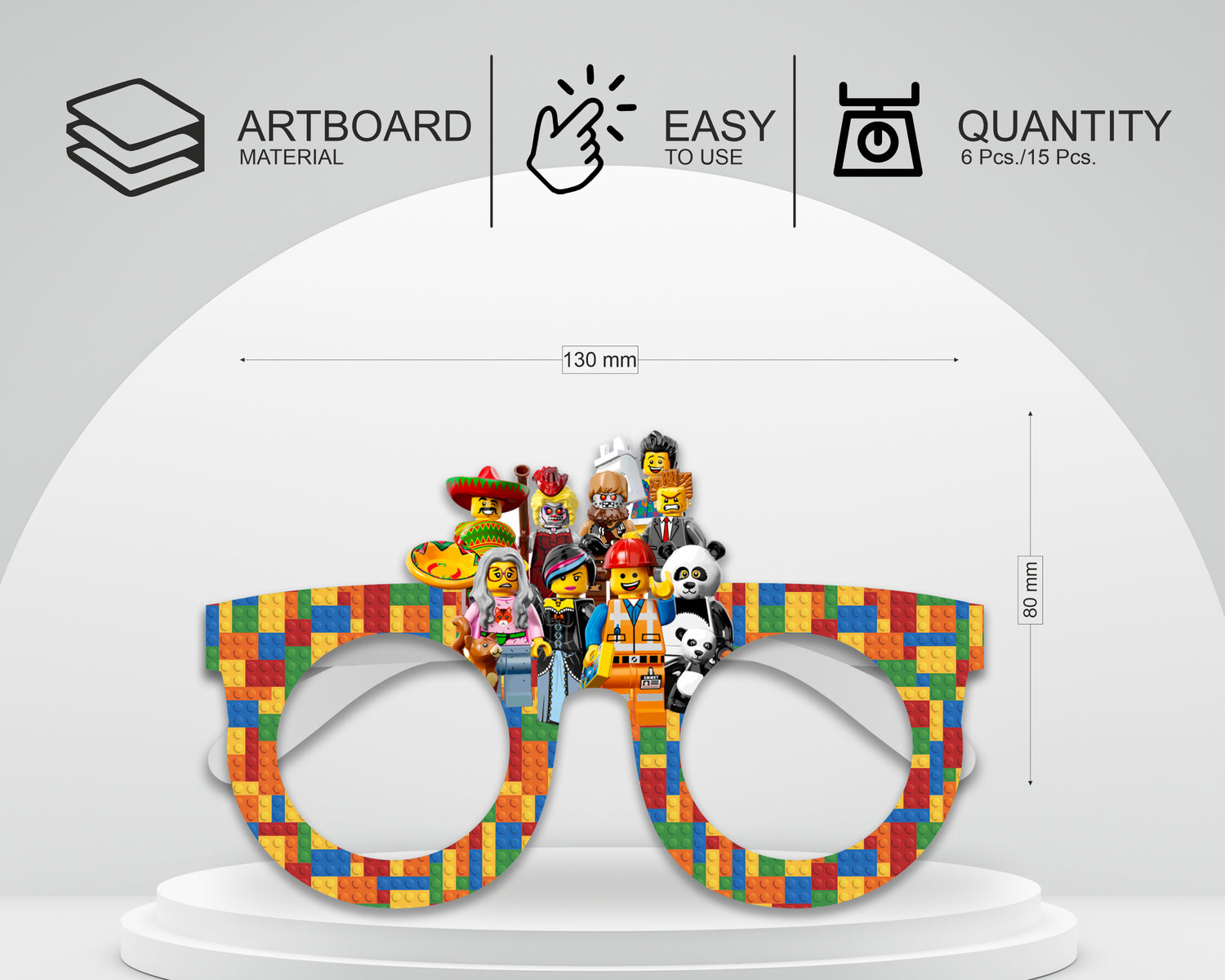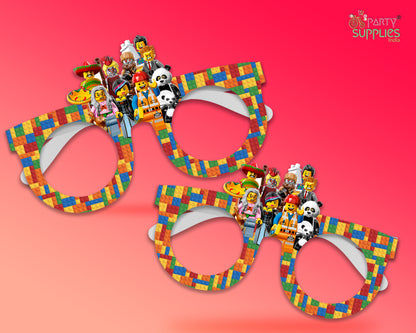 Lego Theme based eye glasses made of thick paper material for kids birthday party celebrations. This paper goggles suits perfect for kids.