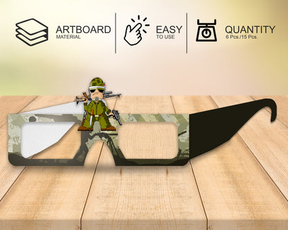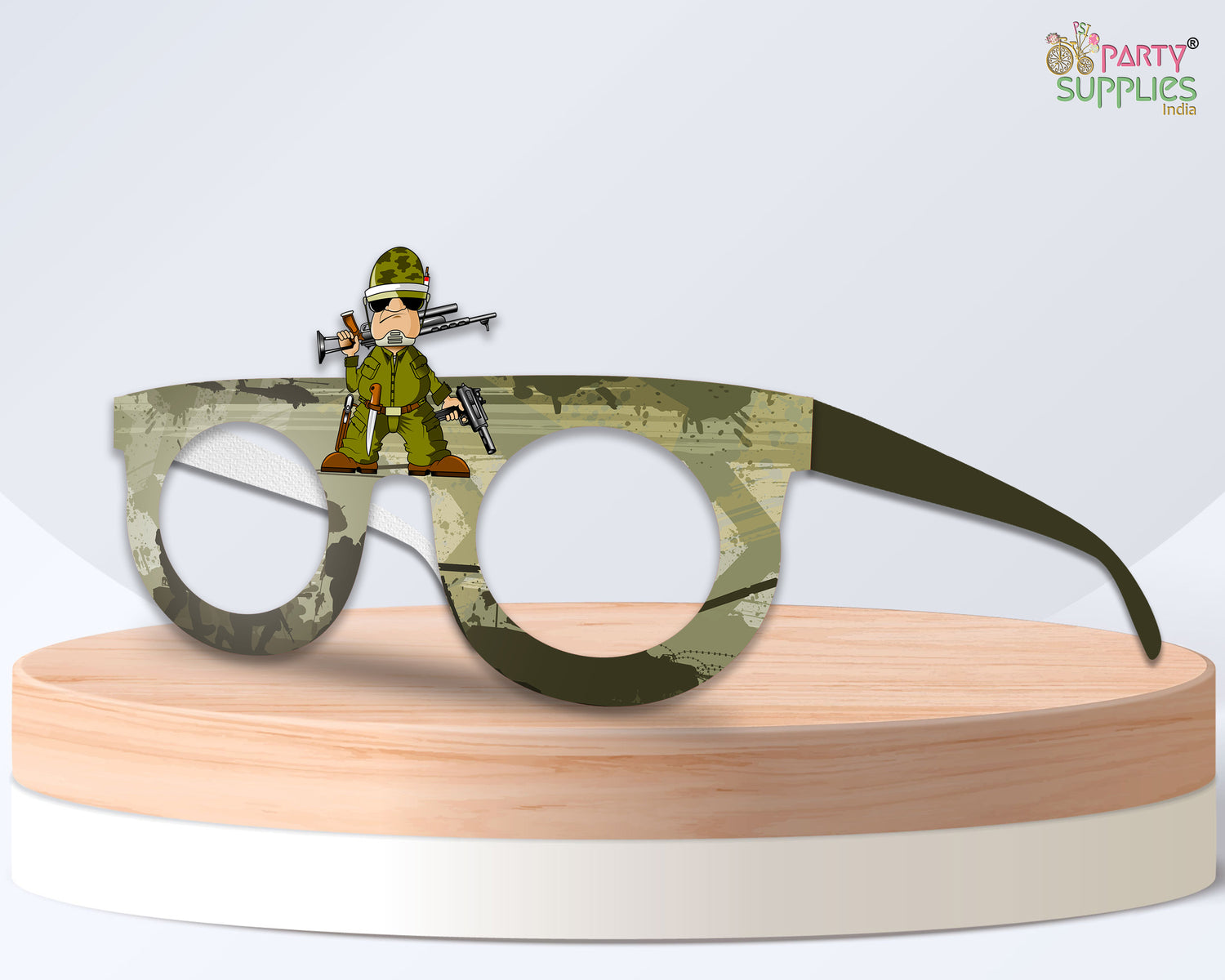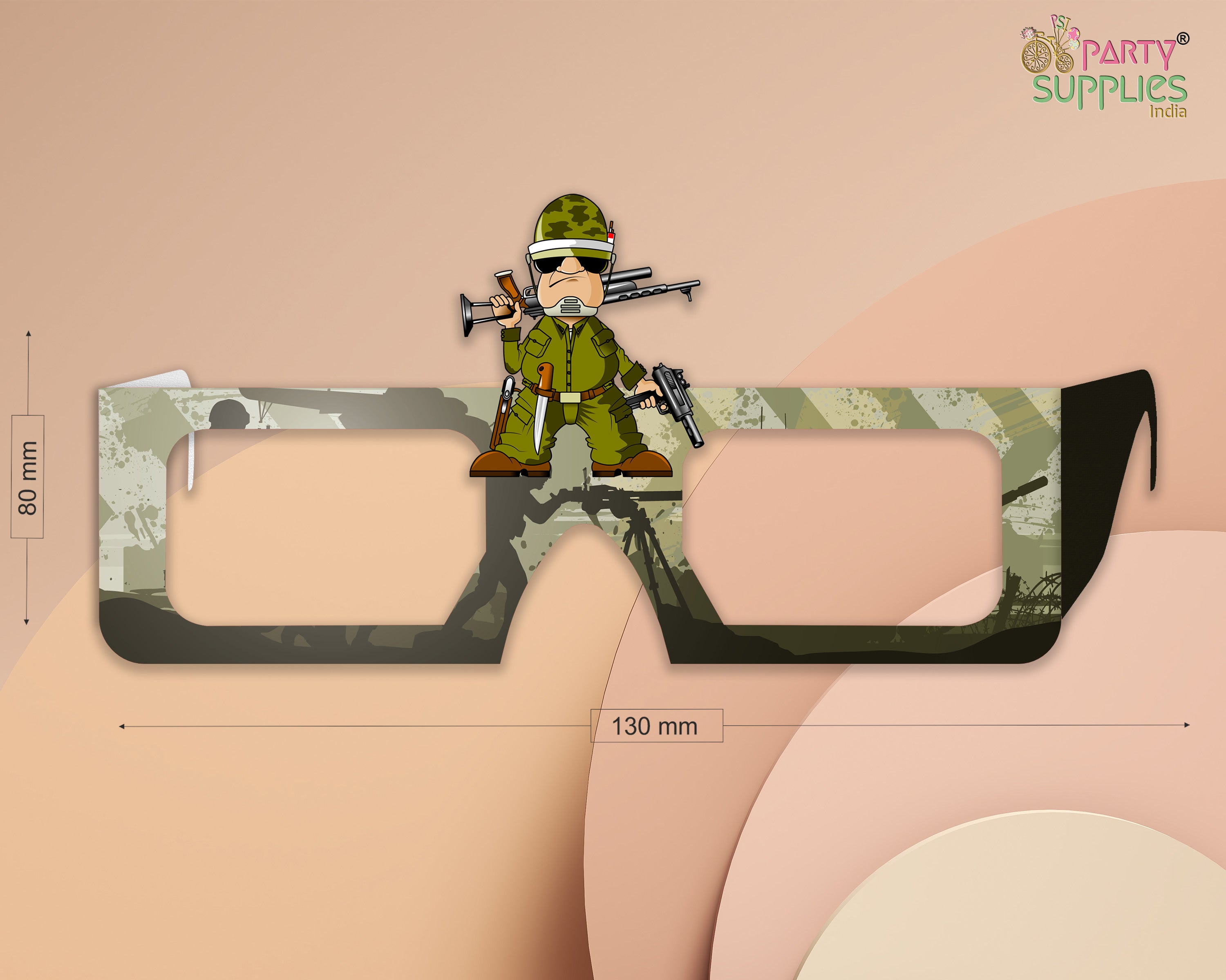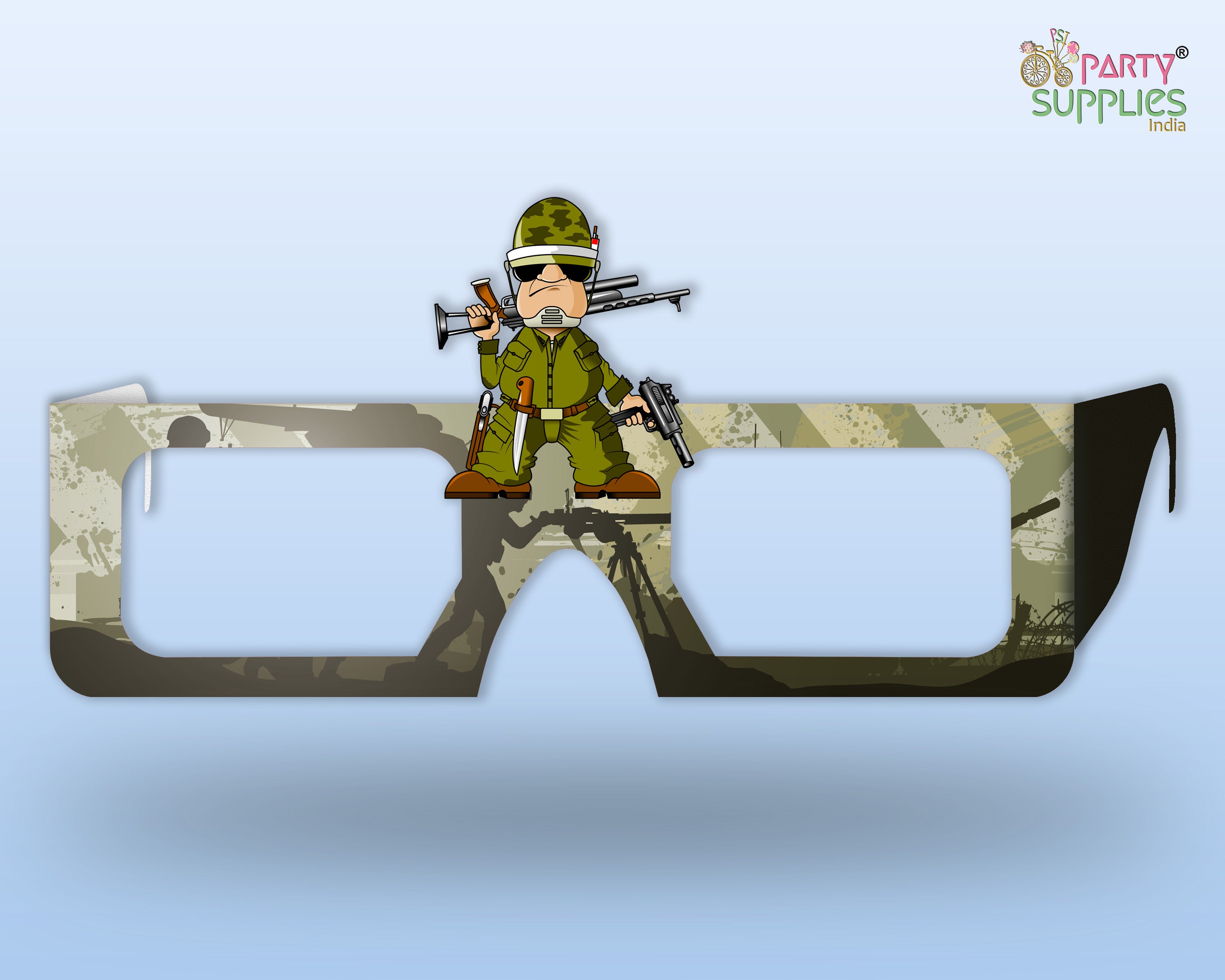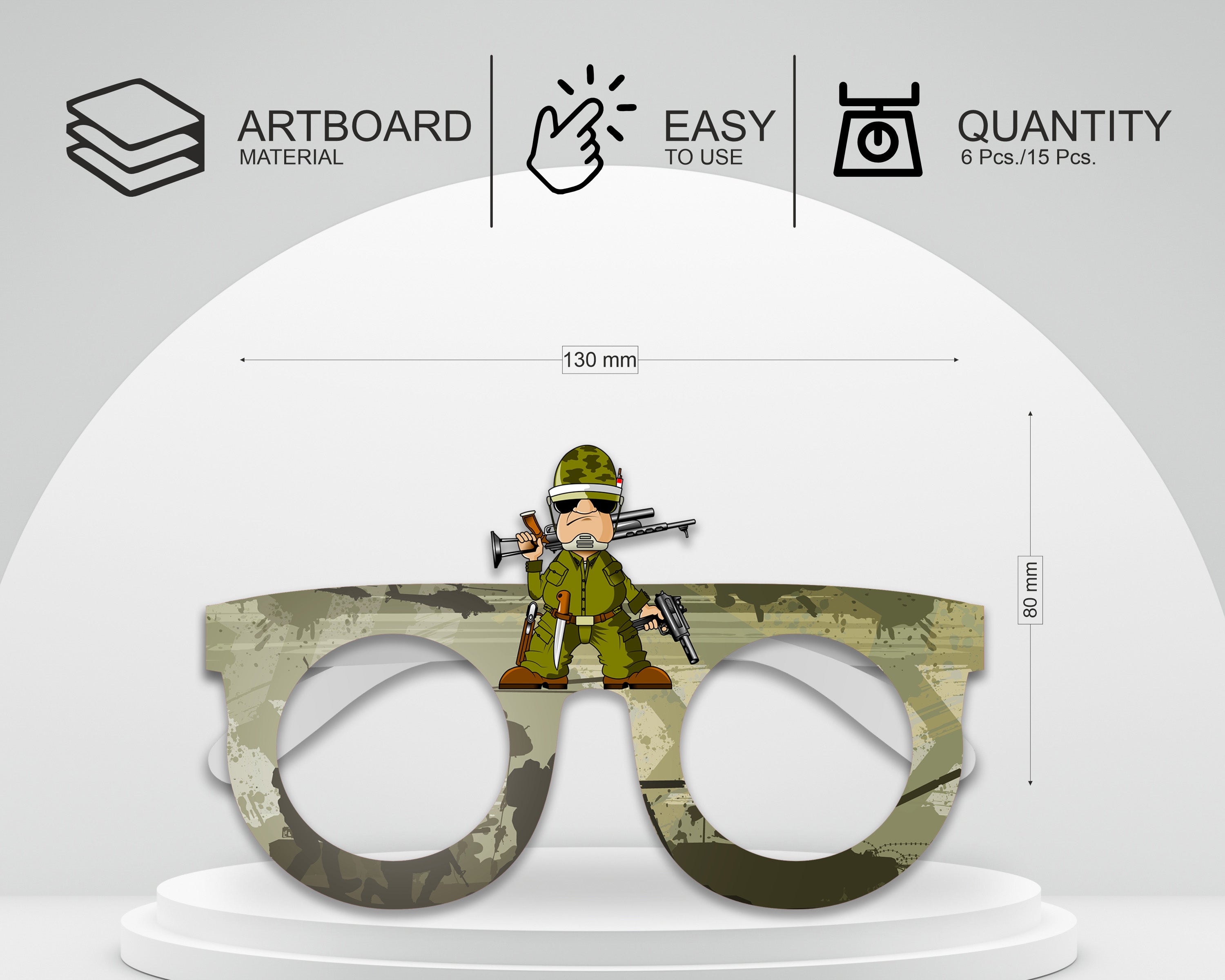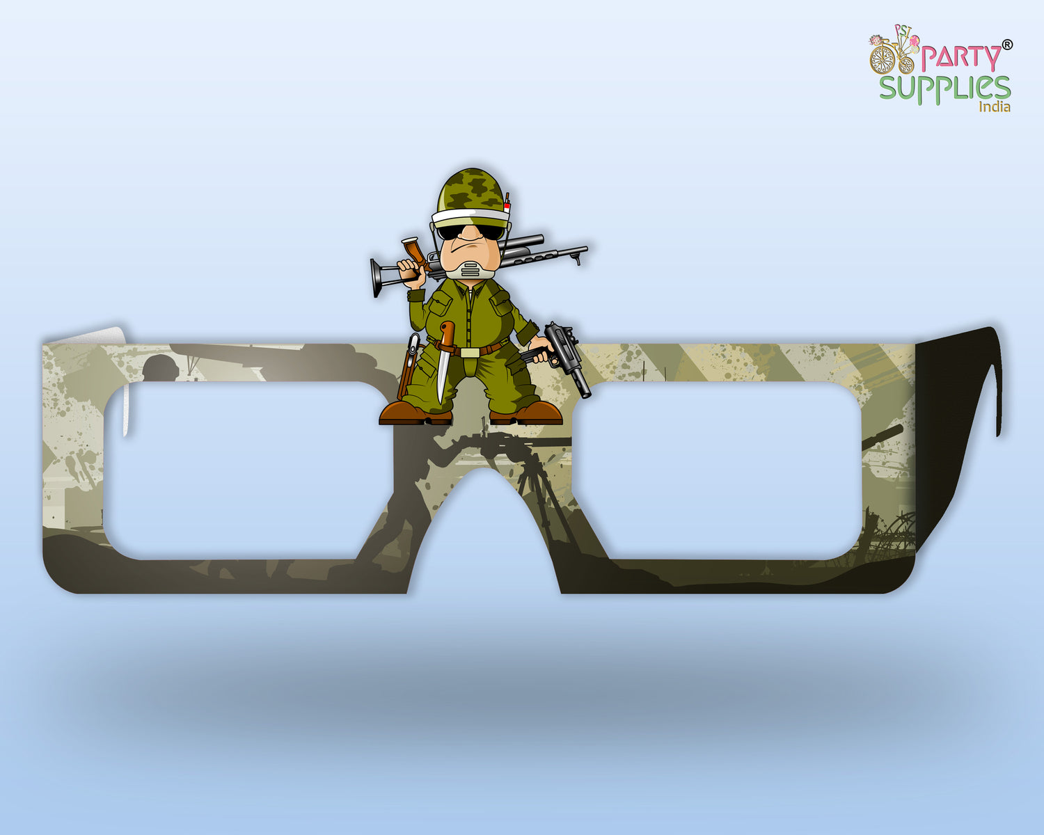 Military key Theme based eye glasses made of thick paper material for kids birthday party celebrations. This paper goggles suits perfect for kids.