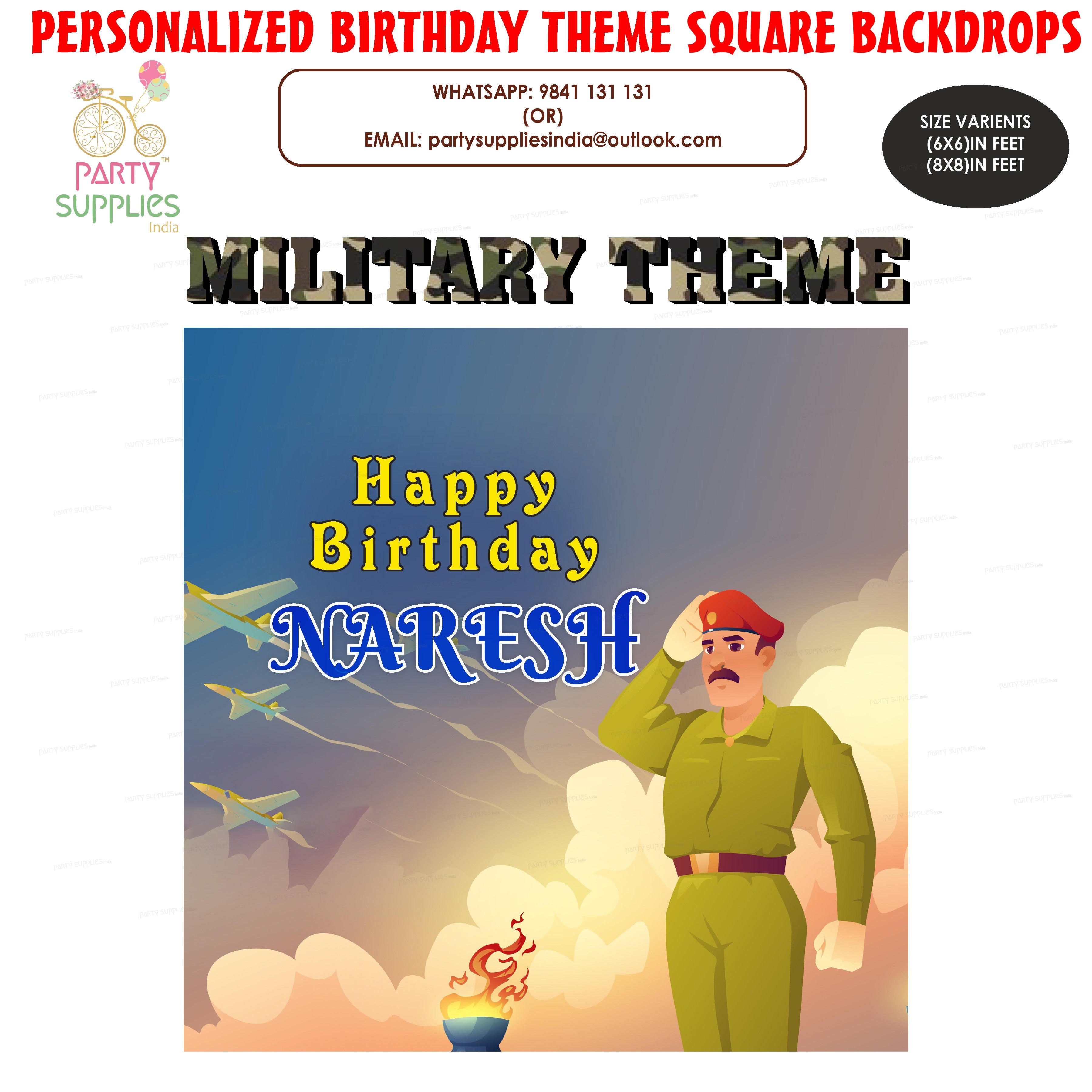 This Military theme based Square Backdrop can be personalized with your baby details. You can share the baby details in form provided below. It comes with different variant sizes.